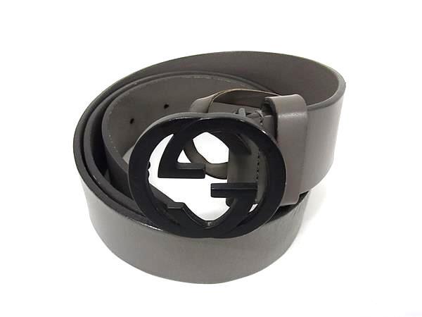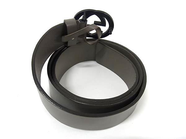 1円 GUCCI グッチ インターロッキングG レザー ベルト 表記サイズ 90・36 メンズ レディース グレージュ系 BQ1061
