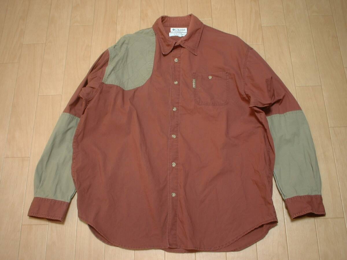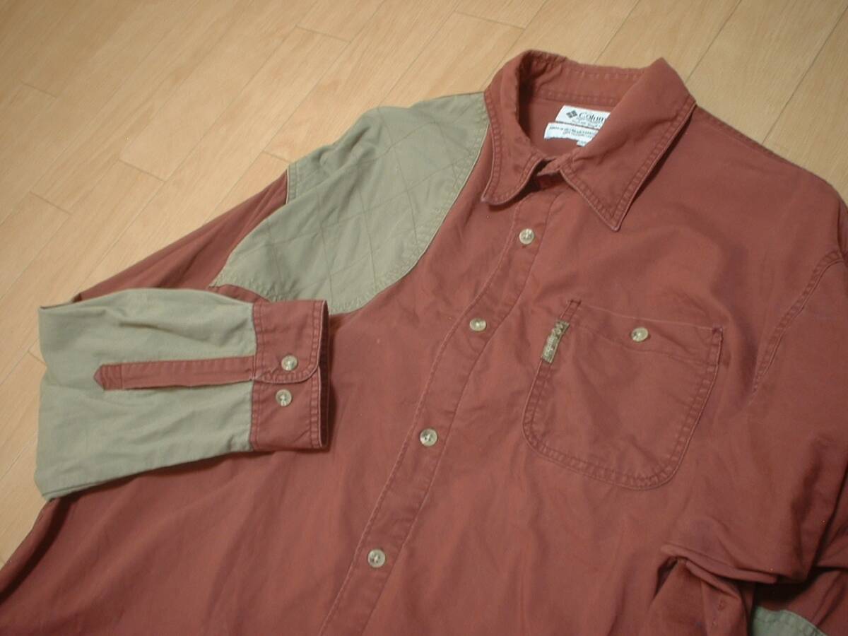 Columbiaエルボーパッチ&ショルダーパッチハンティングシャツXLバーガンディ正規AM7090コロンビア帆布キャンバスコットンHUNTINGアウトドア