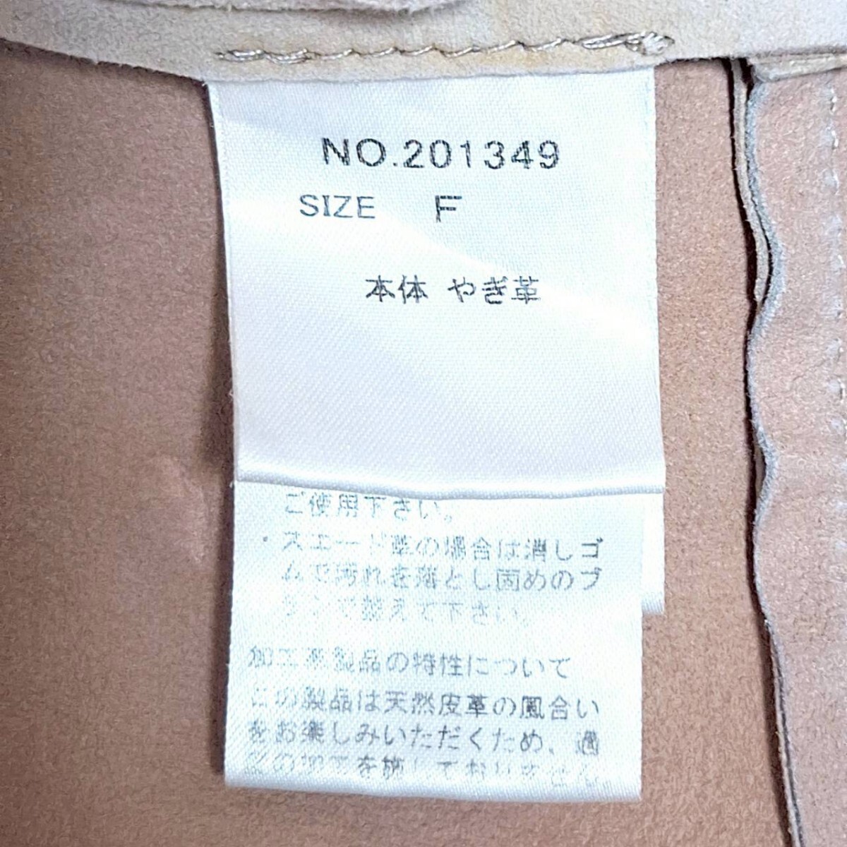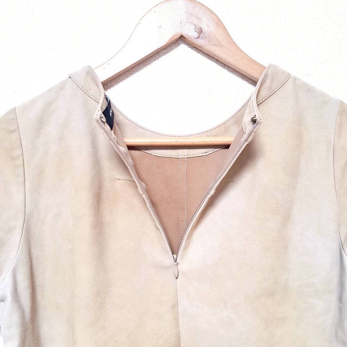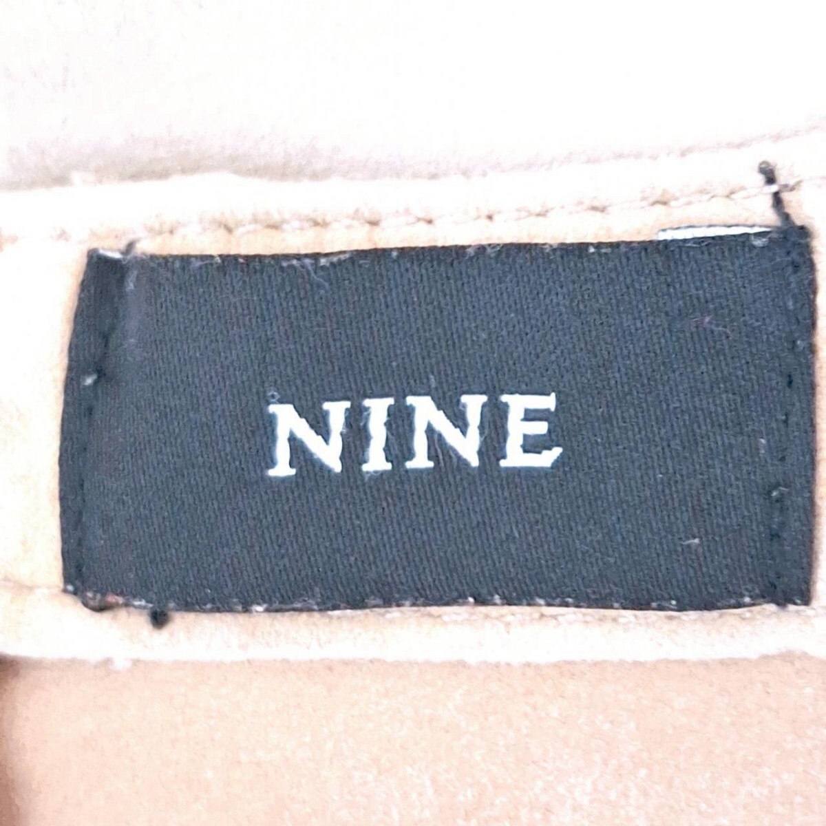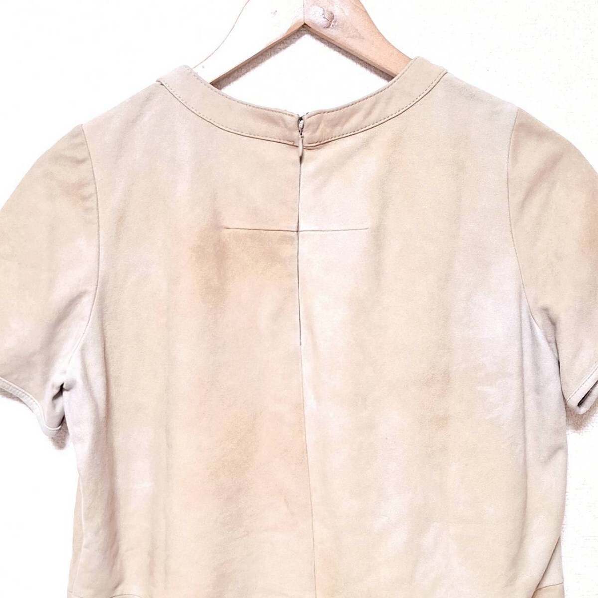 W278【NINE】ナイン Tシャツ カットソー 半袖 クルーネック スリット 本革 ヤギ革 レザー シンプル 無地 ベージュ レディース F(S相当) /ee