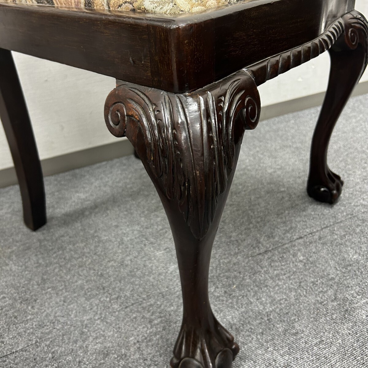 ガブリオールレッグ(猫脚)に透かし彫の曲線模様が魅力的なイスになります。