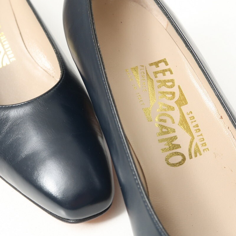 | GS2160▼イタリア製▼サルヴァトーレフェラガモ Salvatore Ferragamo*レザー パンプス 5.5C(22.5cm相当)*靴*ネイビー系 | |||