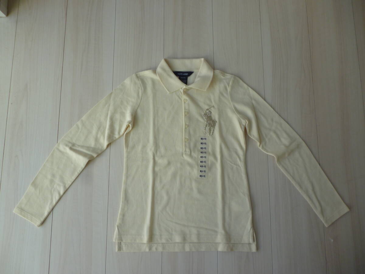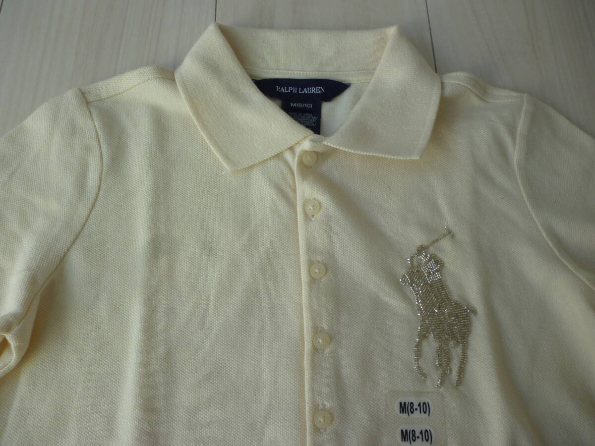 【新品】ラルフローレン きらきらビーズポニー オフホワイトポロシャツ★8/10★140cm
