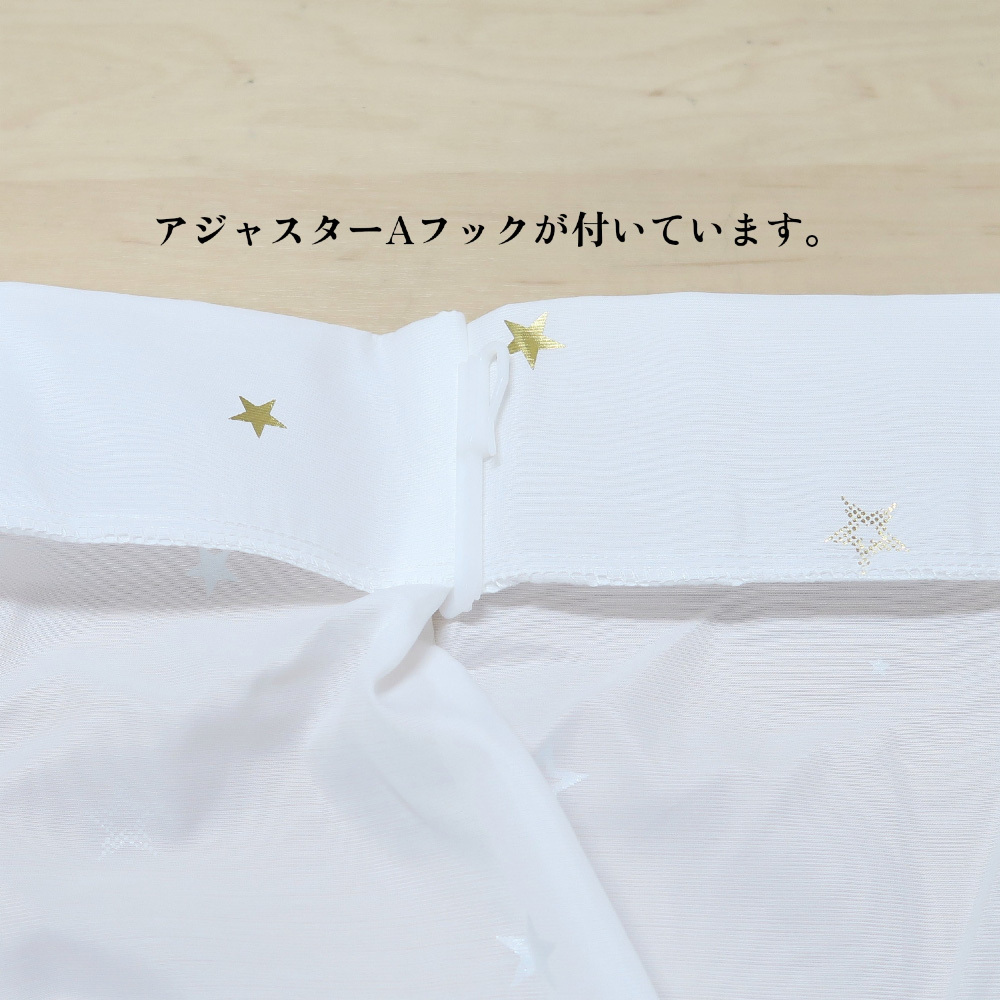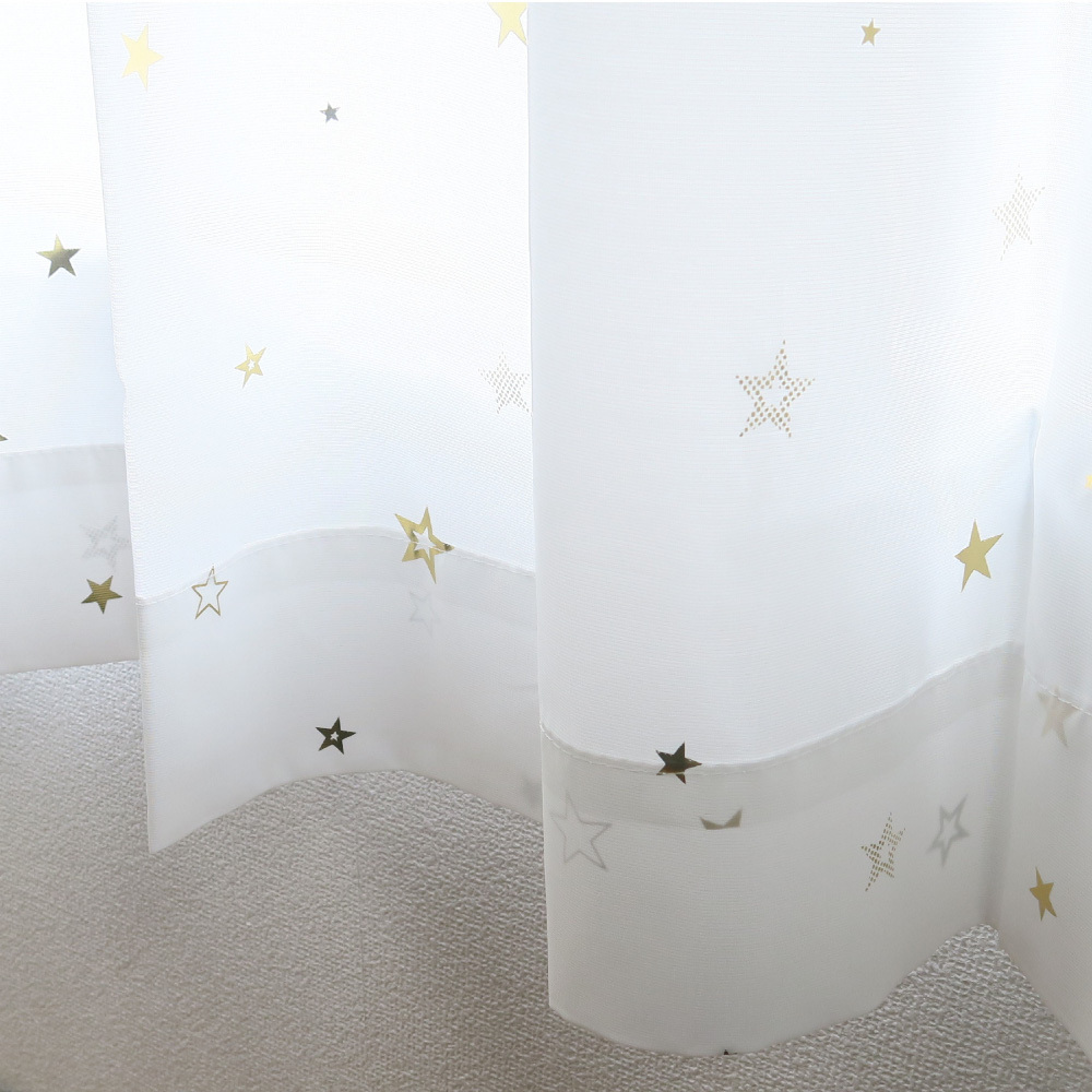 レースカーテン かわいい 星柄 ゴールド 幅100cm×丈108cm2枚 UVカット79.1% 保温効果24.8% 断熱効果16.5% 遮熱 ボイルレースカーテン