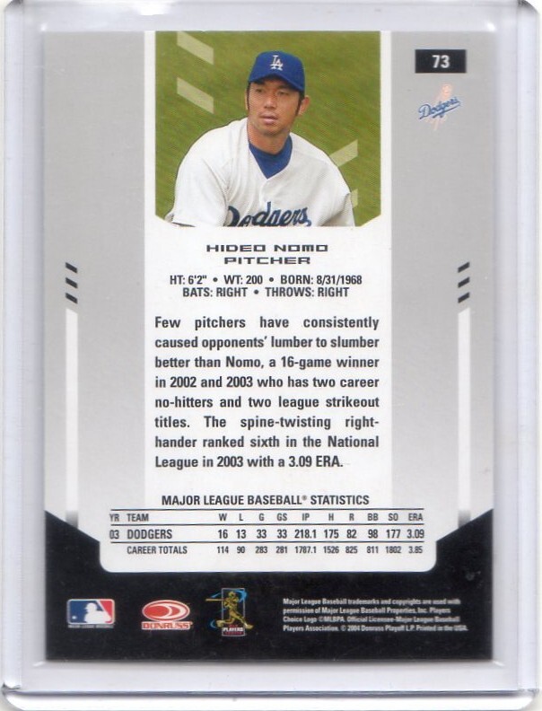 ★☆野茂英雄 カード Vol.531 2004DONRUSS LEAF CERTIFIED MATERIALS #73☆★ | |