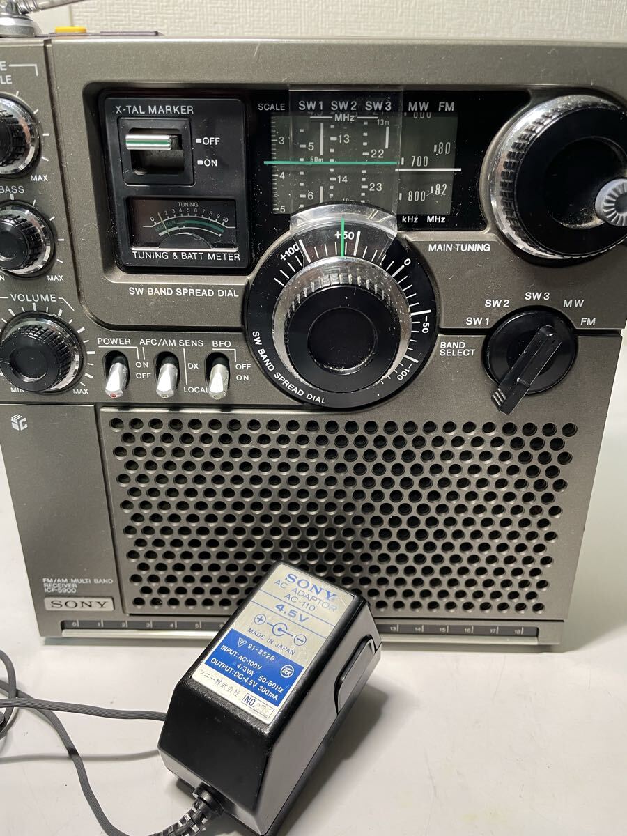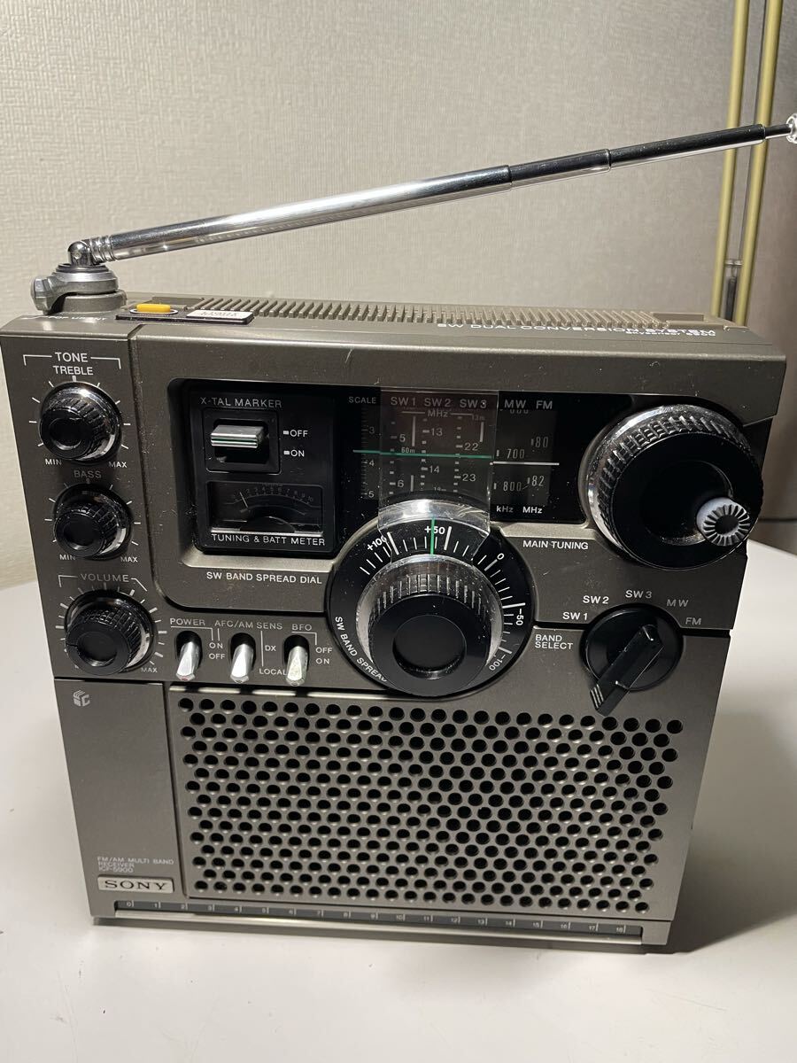 終活に伴う某BCLマニアのOBから、昔オークションで「整備品」という事で購入したという当該品物を譲り受けました。見た目は美品かと思います。AM FM SWすべて受信確認できました。電池での動作も確認しました。Sメーターは固着しているのか、動作確認できませんでした。したがってジャンク扱いでの出品となりますのでNC NRで宜しくお願い致します。写真の純正ACアダプター付きます。また送料込みなのでこの価格設定になります。 動作確認動画です。御参照ください。