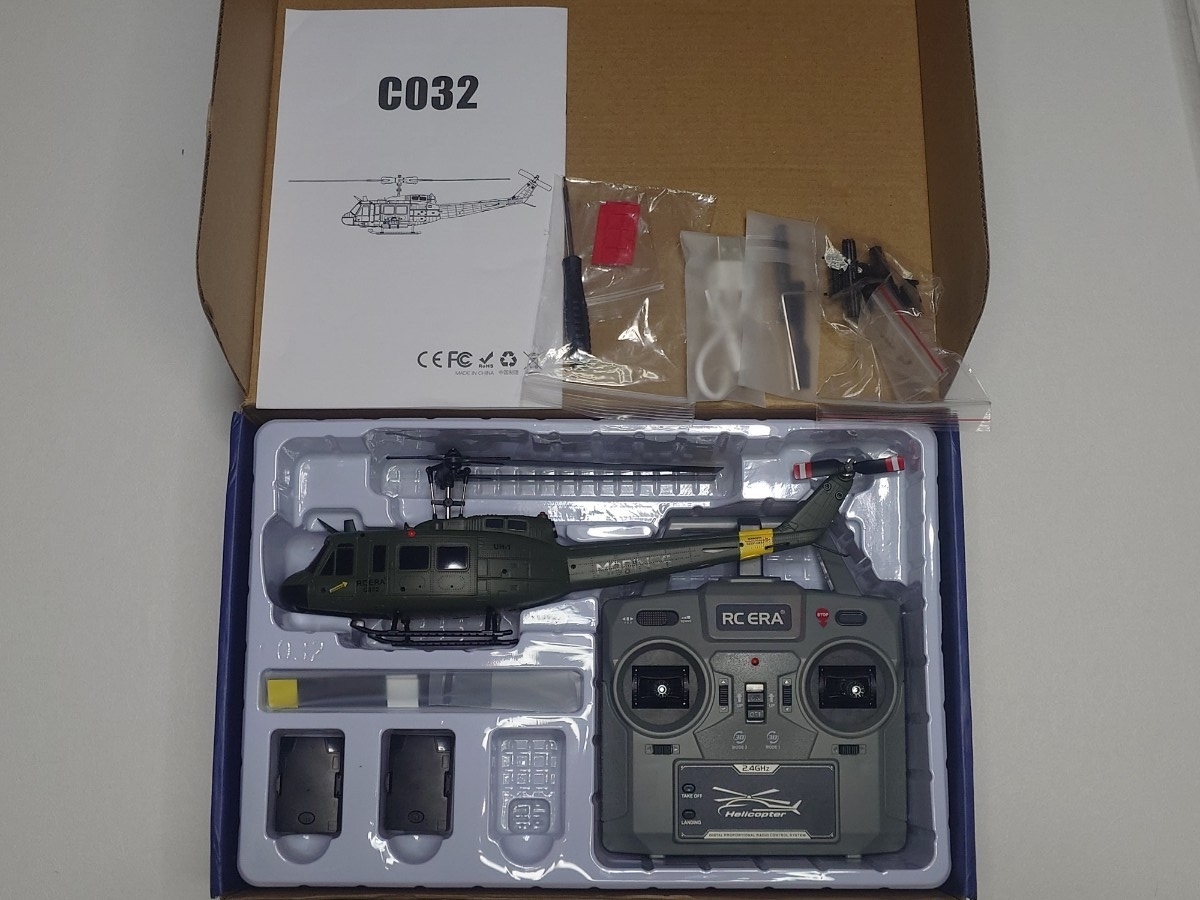 到着時に箱に少し損傷ありました。飛行はしておりませんが、開封後サーボ、ローターの作動確認済みです。写真を参考にして下さい。