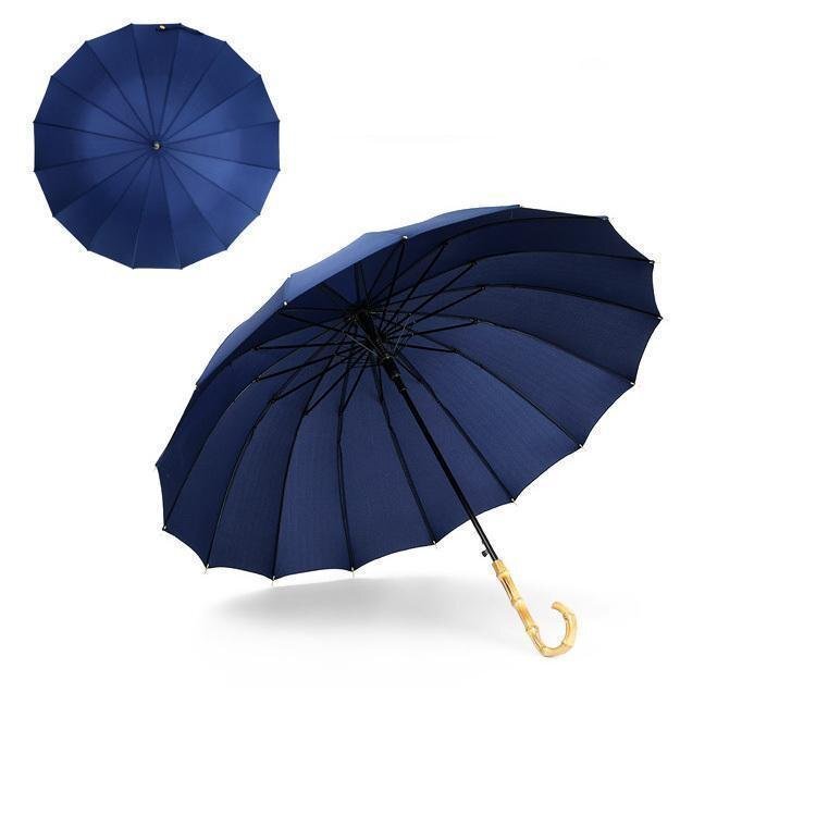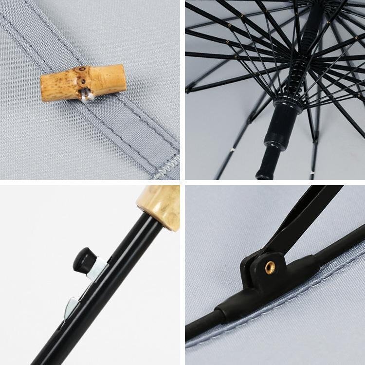竹柄防水雨傘 - 16本の骨構造、晴れの日も雨の日も通勤に最適