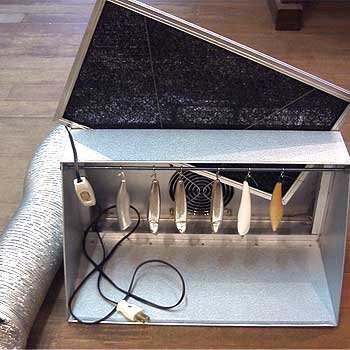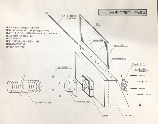 商品説明 | VAGABONDファクトリーのルアー工房と同型のダウンサイズ試作吹き付けブースの家庭版! 近年のルアービルディングブームと家庭でのクラフト作業増加に伴い、問題点が多かった家庭でのペイント作業に効果絶大。 お部屋での作業効率が飛躍的にアップします。もう嫌な匂いは残りません。 エアブラシやスプレー缶を使用するプラモデル等の塗装にもどうぞ。 ◆背面のダクトホース(100mm)は、伸ばすと2メートルにもなり、ブースのみの移動が可能ですので設置場所を選びません。 ◆手元でファン電源スイッチのON/OFFが切り換えできます。 ◆フィルターの脱着を容易にできるよう設計。掃除の際も手間取りません。 ◆ルアーハンガーが付いているため、吹き付けして後すぐにルアー等を掛けることができ、作業能率が大幅アップ。 ◆容量に適合した排気力で効率良く排気できるため、お部屋に有機溶剤の匂いが充満せず、快適に作業できます。 ◆収納するときはファン部を取り外し、ファンとホースをブース内に入れることができるため場所を取りません。 ※フィルタのカラーは、写真と違い白の場合があります。選択はできません。予めご了承ください。 ※ファンの組立に配線加工が必要です。 ■横幅:410mm×高さ:230mm×奥行:250mm ■ルアーを掛けるフック金具6コ付 ■簡単組立式 ■取扱説明書付 |
