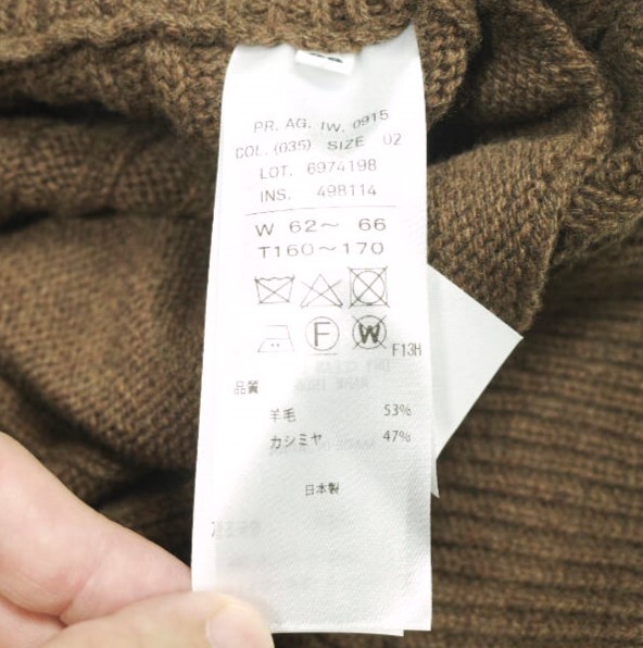 新品 ATON エイトン 日本製 CASHMERE WOOL WIDE EASY PANTS カシミヤウールワイドイージーパンツ PRAGIW0915 02(M) BROWN ボトムス g23069