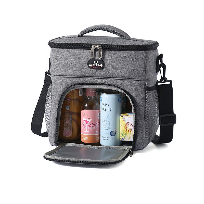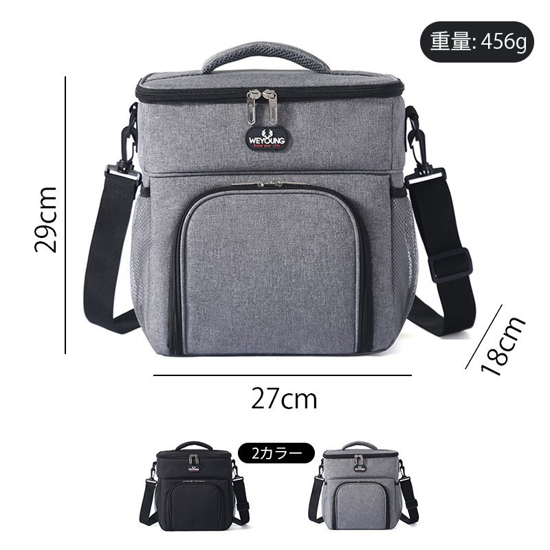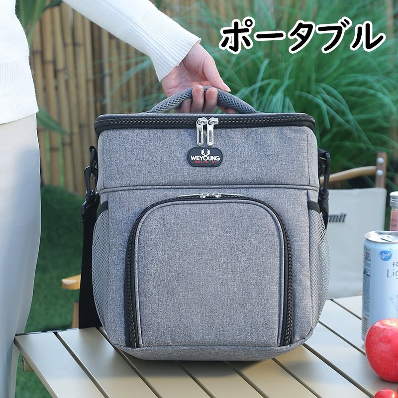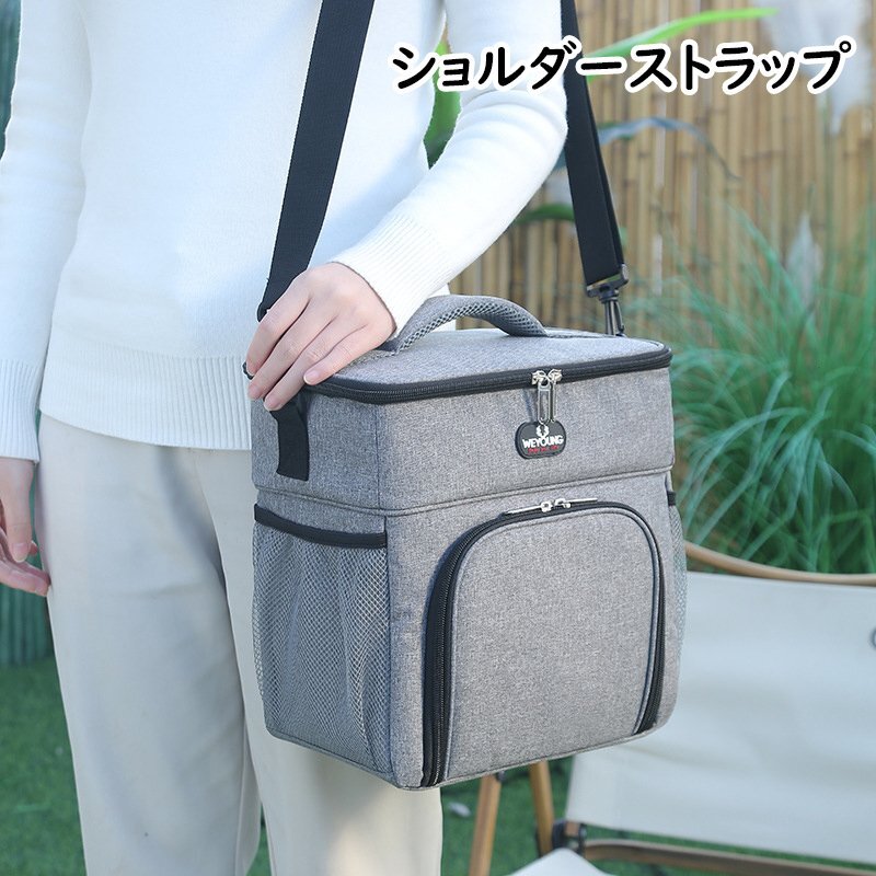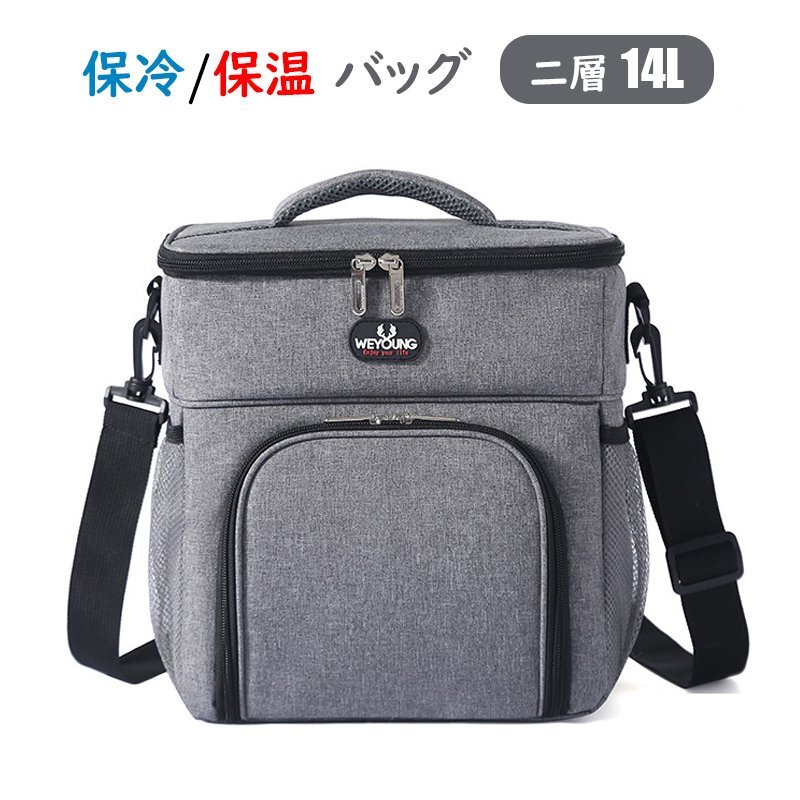 ランチバッグ クーラーバッグ 2層式 大容量14L 保温 保冷 かばん お弁当箱 ショルダーストラップ付き 2WAY ピクニック アウトドア 灰 840