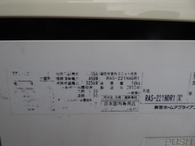 | TOSHIBA 東芝 ルームエアコン RAS-221NDR1 (W) / RAS-221NADR1 6畳 100V 2012年製 |