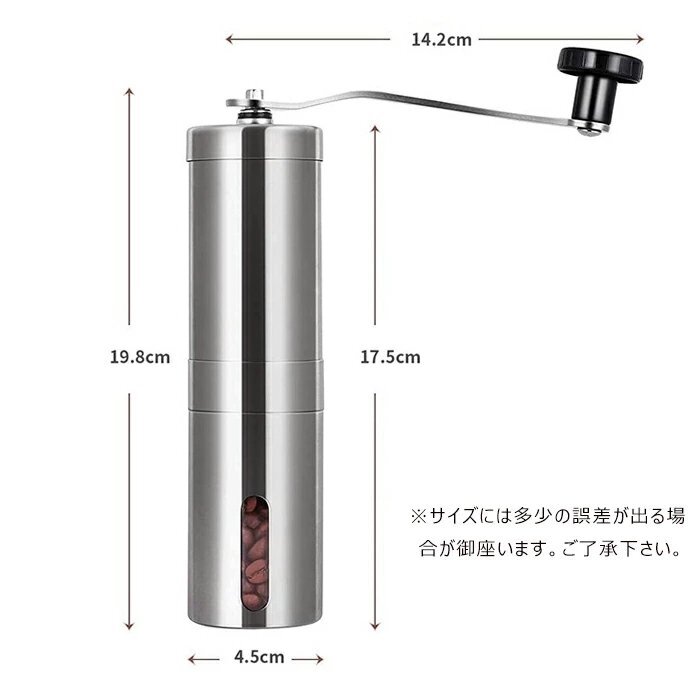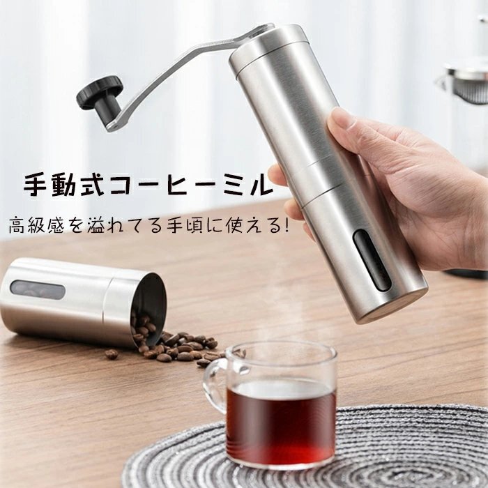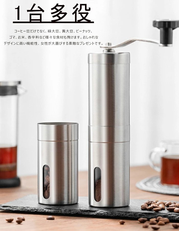 コーヒーミル 手動 手挽きコーヒーミル アウトドア 珈琲 3~4人分 手動式 セラミック製臼 304ステンレス コーヒーミル 水洗い可能 ☆1点