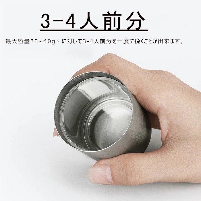 【お手軽に】お手軽にご賞味頂ければと思います。コンパクトで持ち運び便利でご家庭や外出先でもご利用いただけます。容量はコーヒー豆約30~40gで3~4人分までのコーヒーをご用意いただけます。