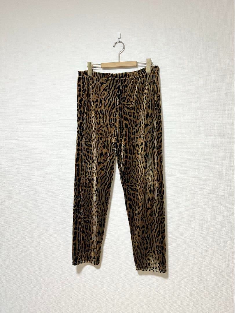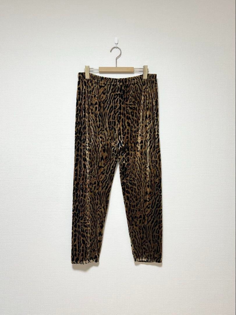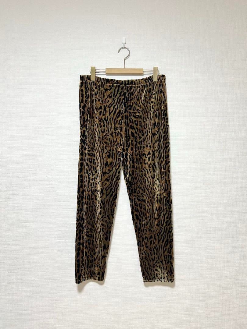 光沢のあるベロア素材でテーパードのかかったシルエットです。