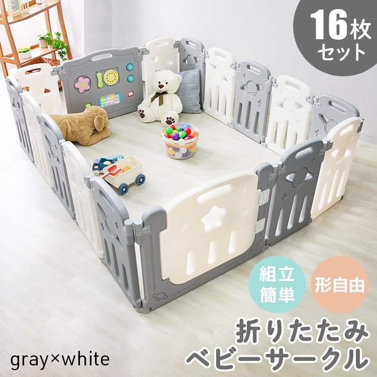 お子様に安全な軽くて柔らかい素材と丸みを帯びたデザイン! ママにも簡単に組み立てられるベビーサークルです。 赤ちゃんの脳の発達を助けるトイパネルも付いています。 工具不要で組み立て簡単! お好みの形に広げて接続部分のキャップを締めて固定するだけ! 外側から扉をロックすることができるので、お子様が勝手に外へ出てしまう危険性がありません。 お手入れはサッと拭くだけ! 組み立てたまま拭けるのでお手入れも簡単! いつでも清潔を保てます。 また、当店人気商品の プレイマット や ジョイントマット カラーボール との組み合わせも相性抜群です★ 【商品仕様】 こちらは16枚セット/グレー×ホワイトの商品ページとなります 内容:おもちゃパネル×1、扉パネル×1、パネル×14 対象年齢:6ヶ月から8歳頃まで 素材:ポリエチレン 【注意事項】 ・本製品の組み立て、設置は、必ず保護者の方が正しく行ってください。 ・必ず保護者のもとでご使用し、お子様の行動には十分ご注意ください。 ・暖房機器や火気の近く、または屋外では使用しないでください。破損や変形の原因となります。 ・パネル縁、柵の隙間の処理時、カッターでのバリ処理を行っております。 その為、バリ処理跡やへこみなどがある場合がございます。 こちらは製造上発生する跡の為、跡の状況によってはご返品、交換のご対応ができない場合がございます。 バリ処理には細心の注意を払っておりますが、万が一バリを見つけられた場合は、カッターで削り処理をお願い致します。 ・イメージ違い、お子様がかじるなどでのご交換、返品はできかねます。予めご了承ください。 ・商品は、モニターによって色合いが異なって見える場合があります。 ・仕様・デザインは改良のため予告なく変更することがあります。 |