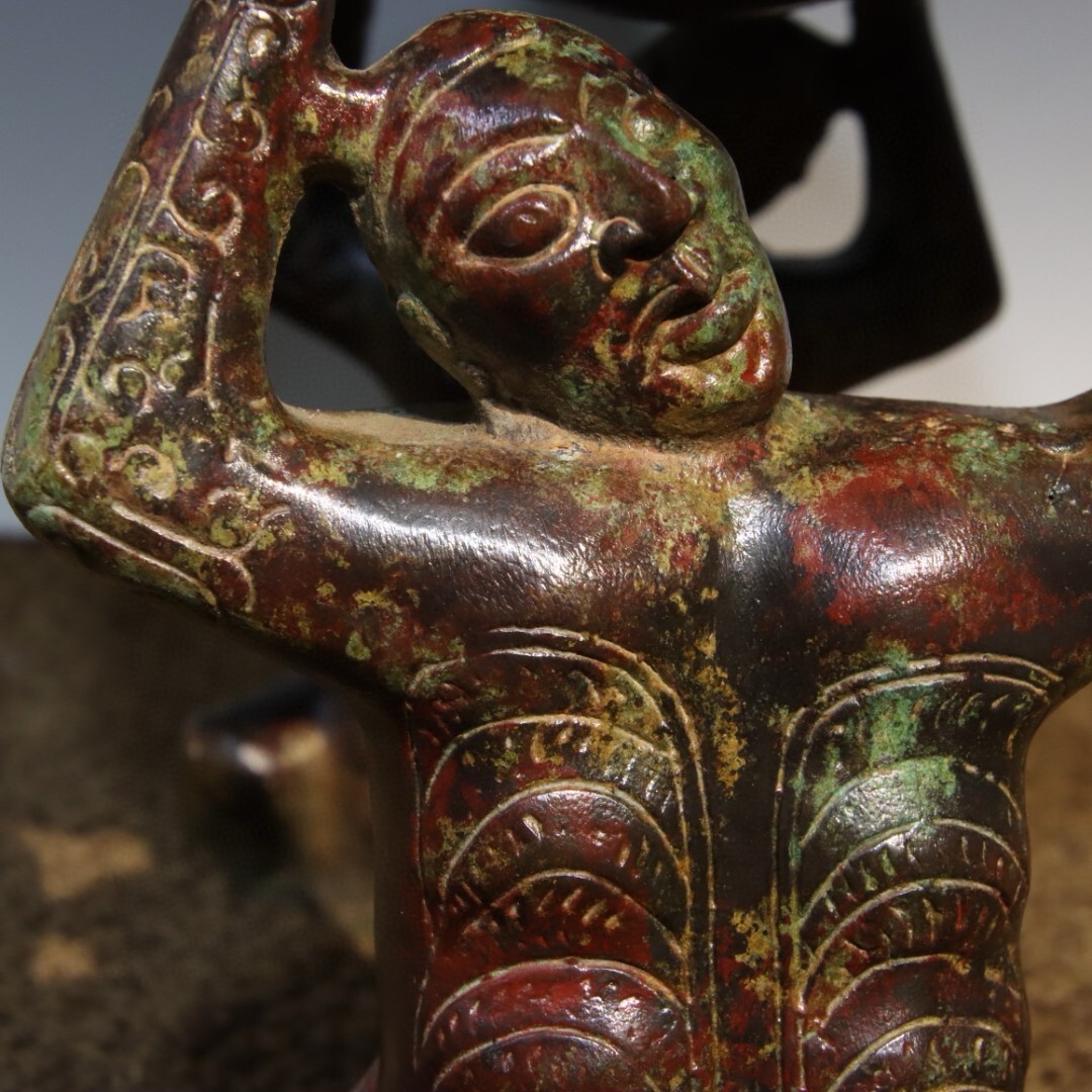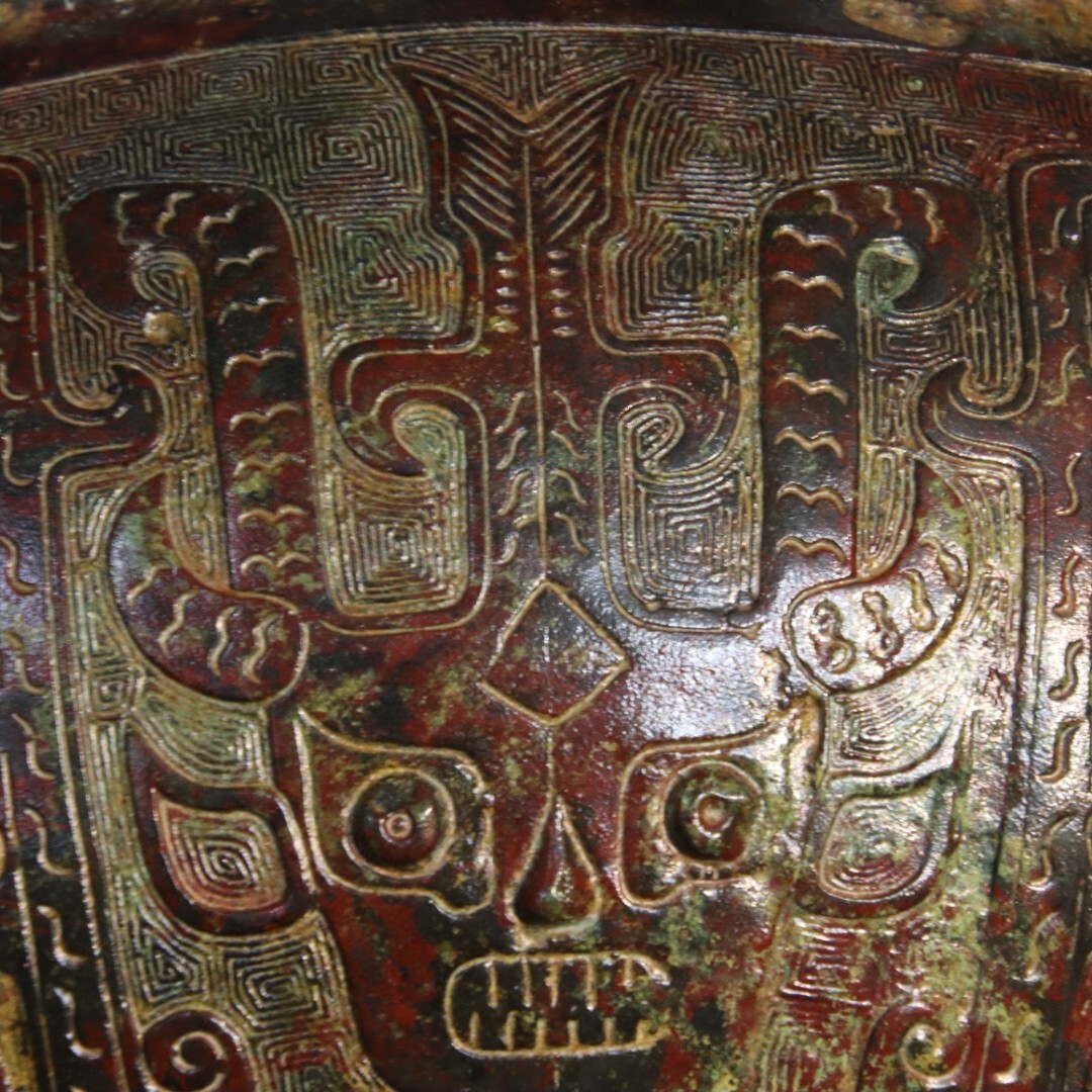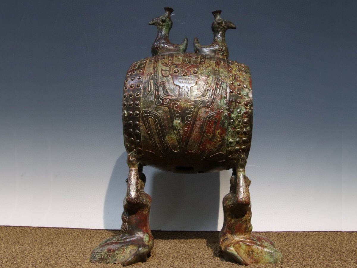 「商周時期 青銅器彫 銘文青銅鼓」青銅器 置物擺件 賞物 中国古美術 旧蔵出