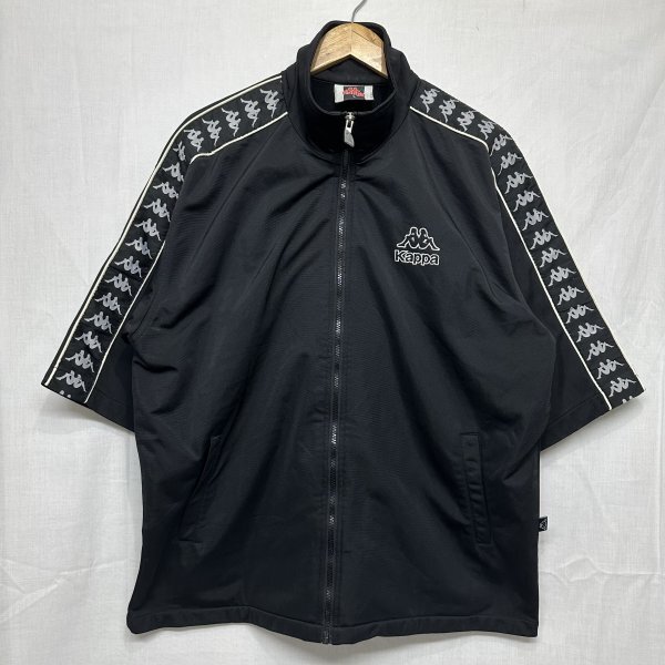 〇Kappa カッパ ショートスリーブ 半袖 フル ジップアップ ジャケット ジャージ スポーツ トレーニング ランニング ウェア L ブラック