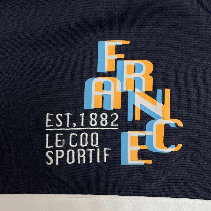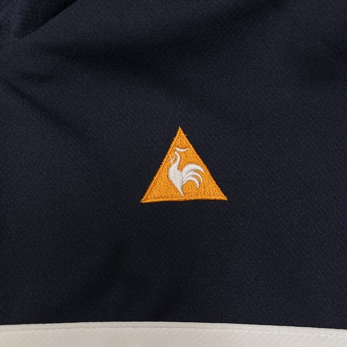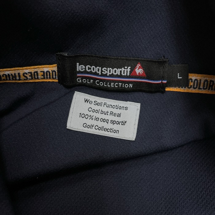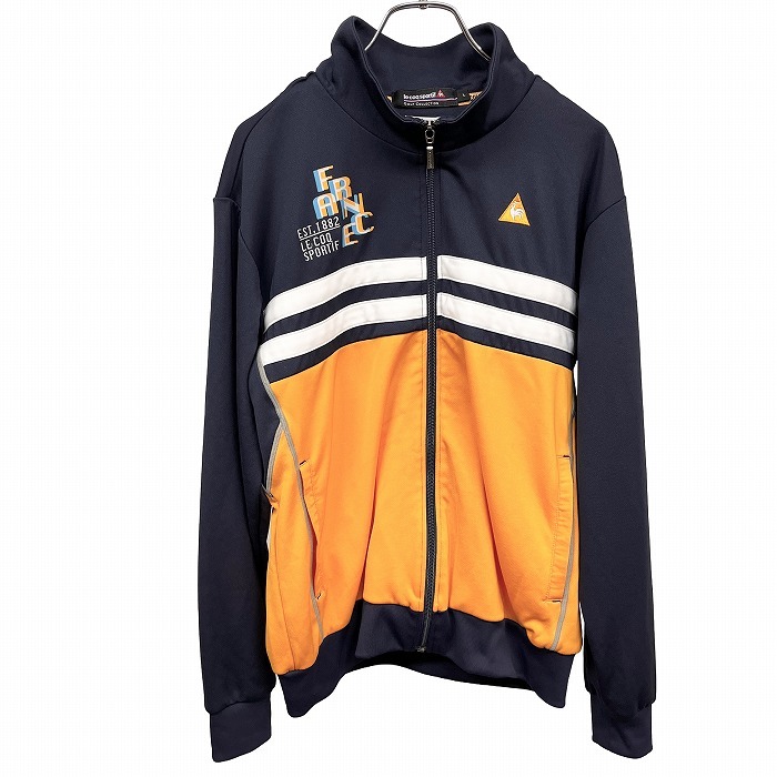 商品タイトル | ルコックスポルティフ ゴルフコレクション 若干薄手 ジャケット ブルゾン ハイネック 長袖 ポリ100% L 紺×オレンジ×白×グレー メンズ |