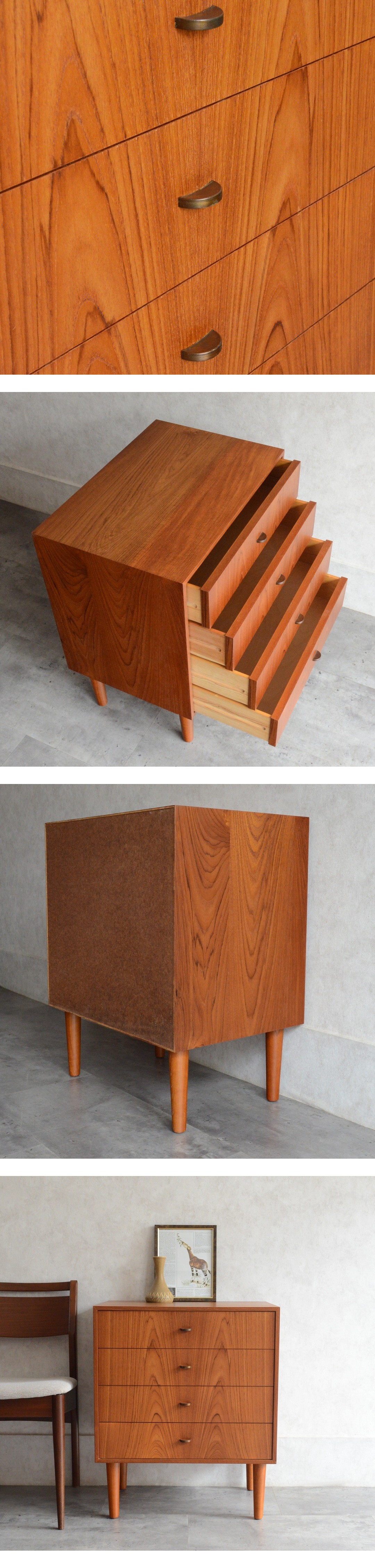 デンマーク 北欧ヴィンテージ チーク 4段 スモールチェスト 北欧家具 ミッドセンチュリー 洋タンス サイドチェスト 北欧デザイン 真鍮把手