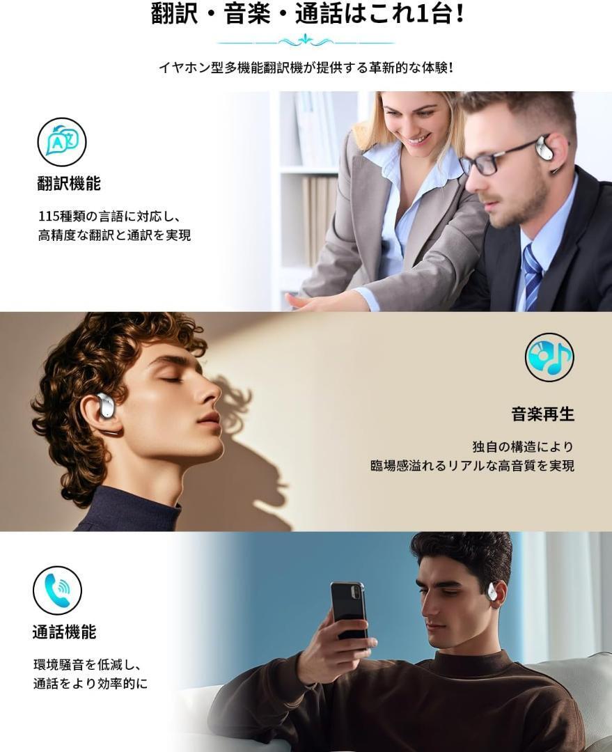 【2025最新イヤホン型翻訳機&翻訳・音楽で活躍】最新の生成AI技術を採用しており、文脈に沿った正確な翻訳を提供します。特にビジネスや専門分野で使用される専門用語やニュアンスを理解し、自然で正確な翻訳を実現します。115種類の言語に対応し、ユーザーのニーズに合わせた高精度な翻訳と通訳をリアルタイムで実現します。カスタマーサポート、ビジネスミーティング、オンラインカンファレンス、観光案内など、さまざまなシーンで即座に活用できます。直感的で使いやすいインターフェースを備えており、誰でも簡単に利用できます。スマートフォンアプリを通じて、どこからでもアクセス可能です。翻訳機として使えるだけではなく、普通にワイヤレスイヤホンとして音楽を聴いたり、通話に使うことができます。