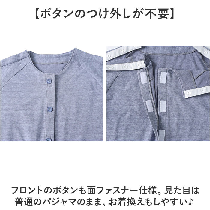 | 商品説明 | ・・【介護や入院生活をサポート】 ・寝姿勢のまま、ケアができる、優れモノ!「介護パジャマ 上下セット」が登場。 ・ ・【着る人、着せる人に親切なパジャマ】 ・普段のパジャマと同じに見えて、実は機能的◎ケアしたい部分だけオープンにできるのが魅力! ・ ・【ボタンのつけ外しが不要】 ・フロントのボタンも面ファスナー仕様。見た目は普通のパジャマのまま、お着換えもしやすい♪ ・ ・【より快適な使用感】 ・開け閉めの少ないトップスの肩から袖とズボンの両サイドはスナップボタンを配置。肌にも優しい仕様。 ・ ・ ・【優しい着心地でリラックス】 ・コットンを使用した生地は、柔らかく長時間着用してもストレスフリー。汗をかいても快適に。 ・ ・【大きめポケットつきで便利】 ・スマホや小物を収納できるポケットを搭載。入院生活でも活躍する、使い心地。 ・ ・【ロングシーズン使える長袖タイプ】 ・薄手の長袖タイプなので、春秋冬と長く使える。冷房の冷えが気になる夏にも◎ |