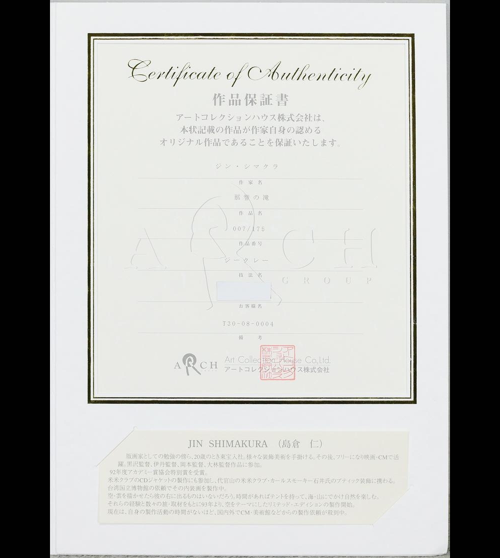 【真作】【WISH】島倉仁「那智の滝」ジクレー 約15号 大作 直筆サイン 証明書付 ◆人気作  〇映画・CM界活躍 黒澤明絶賛画家 #25092403