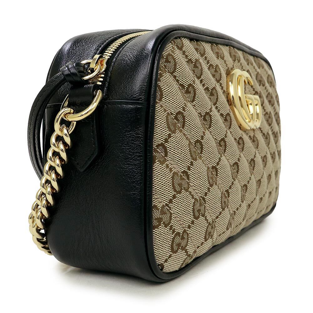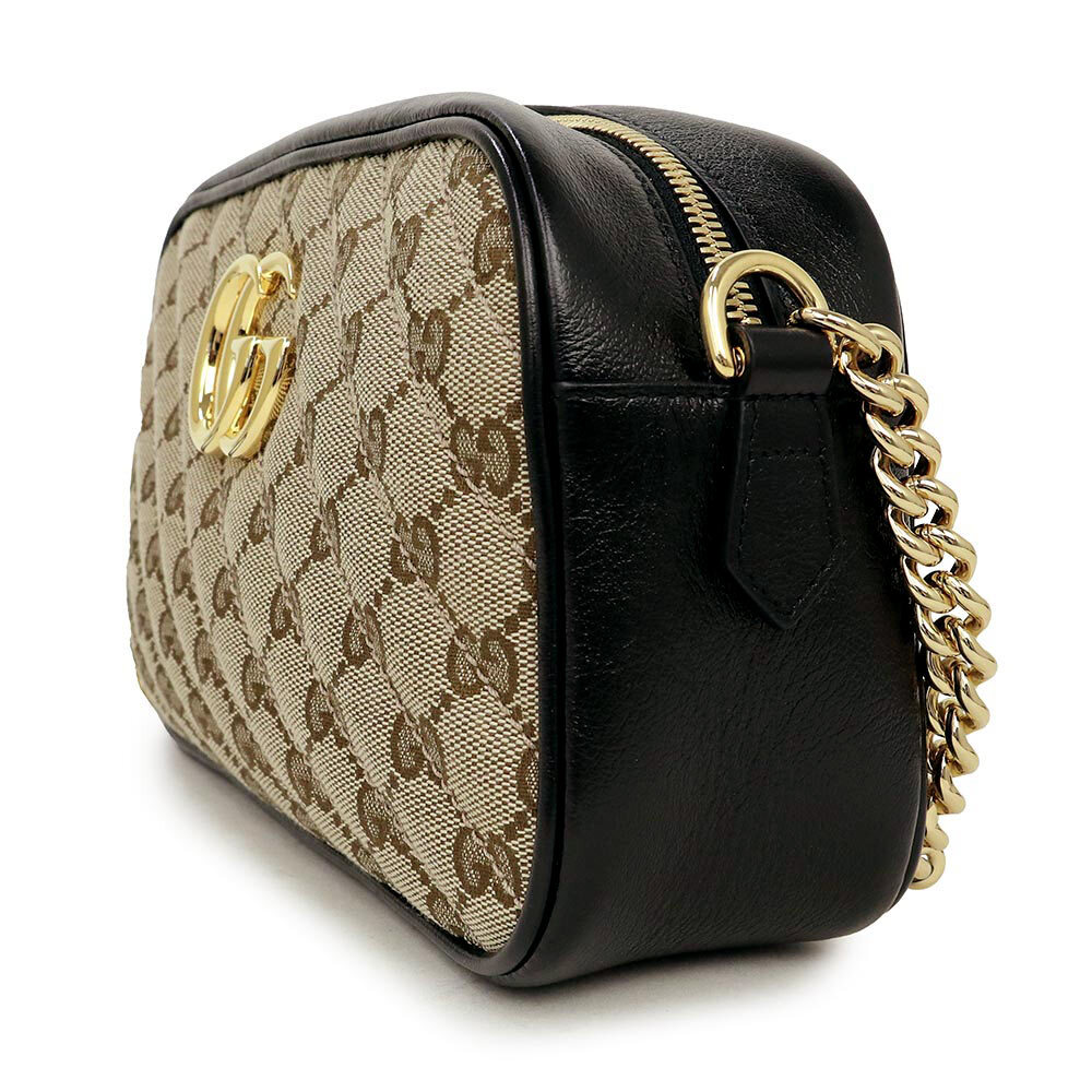 (未使用 展示品)グッチ GUCCI GGマーモント キルティング スモール チェーン ショルダーバッグ GGキャンバス ベージュ ブラック 447632