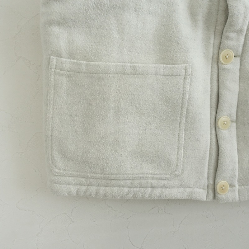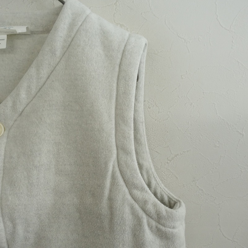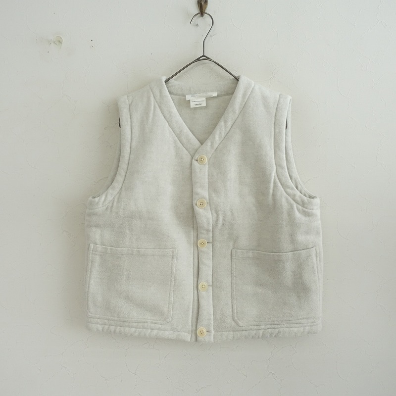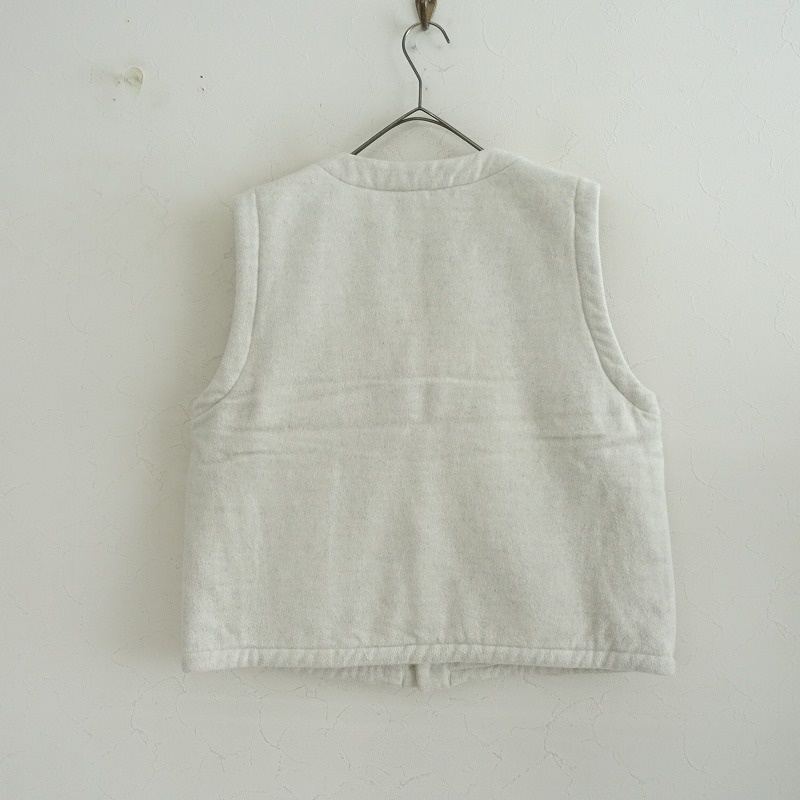 HOBONICHI×YAECAのコットン中綿入りベストです。カラーはライトグレーで、中綿入りの起毛したフリースのようなコットン素材で仕立てられています。ボタン開閉で、両サイドにポケット付きです。 |