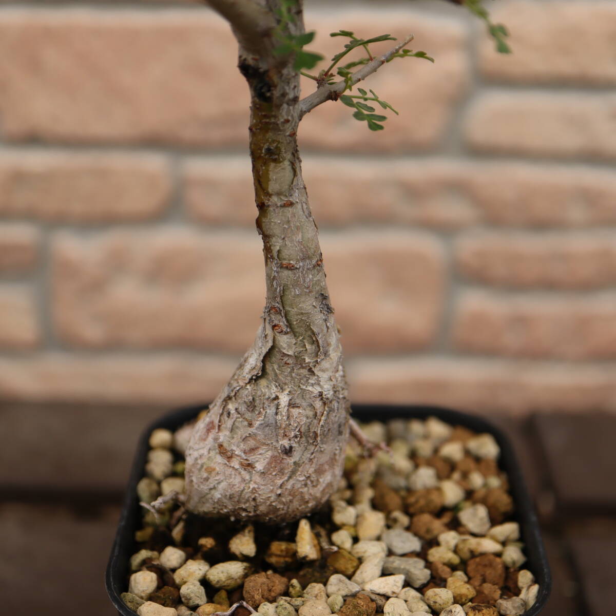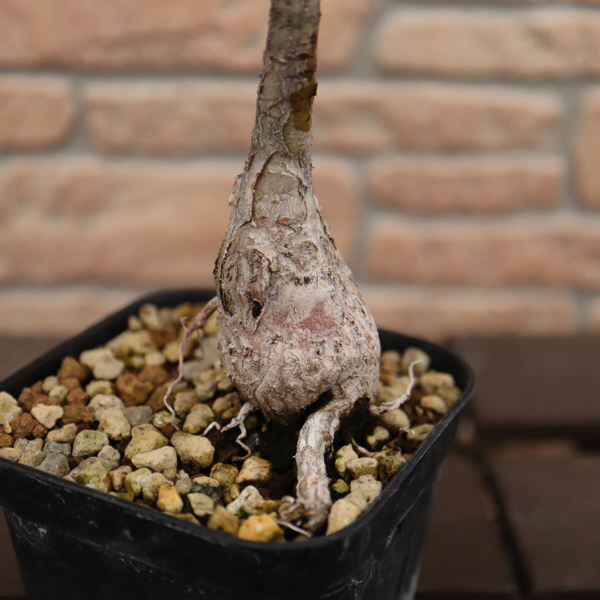 象の木らしい特徴がしっかり現れ魅力的な形状の根元にしっかりとした幹肌、樹勢も旺盛で枝ぶりが良い株になります。象の木は幹の皮がめくれる形で成長をします。枝数の多さや枝の太さ根元部分、幹肌に注目してください。