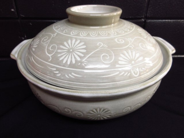 t4744 極美品 土鍋 花見島 三島鍋 SUN CERAMICS サンセラミクス