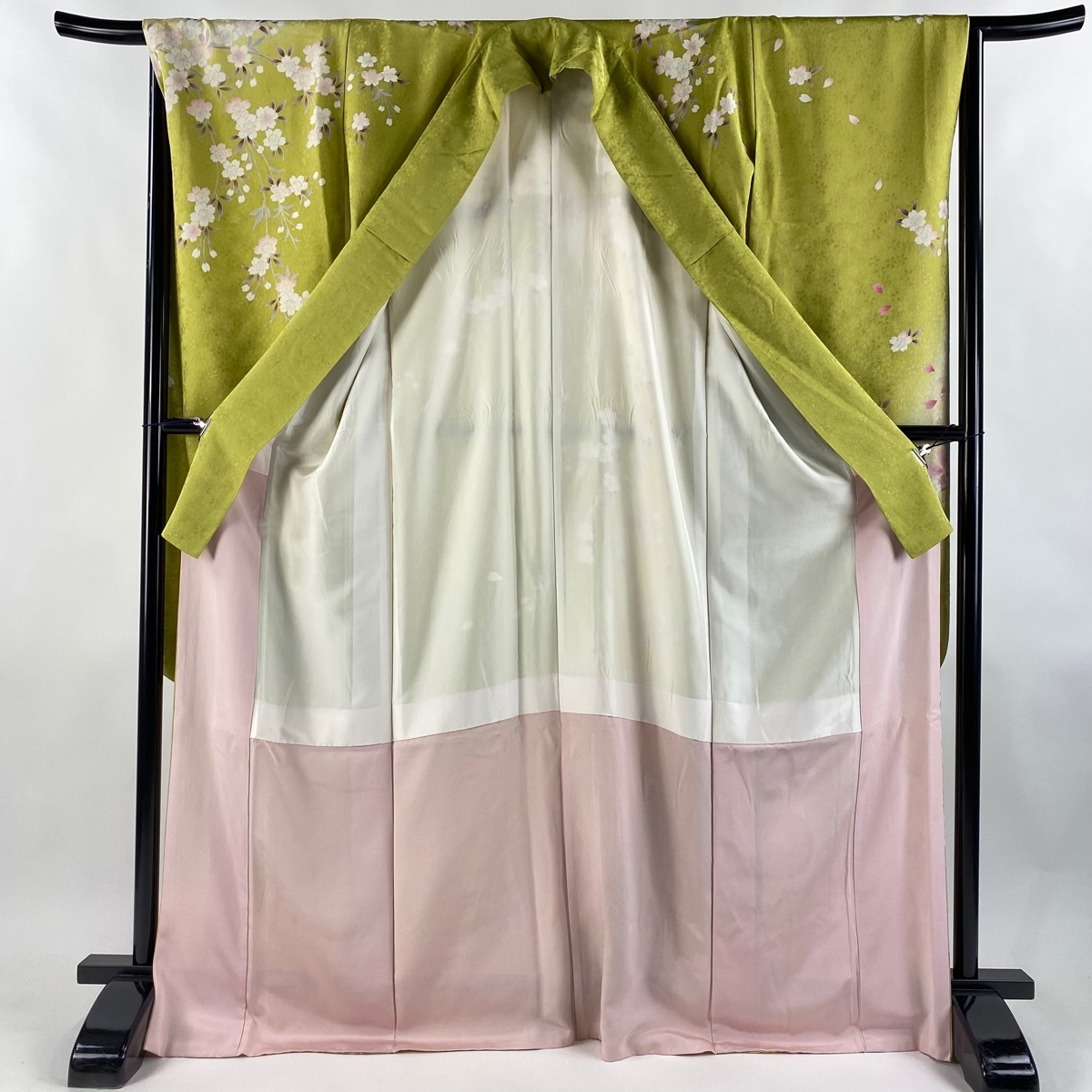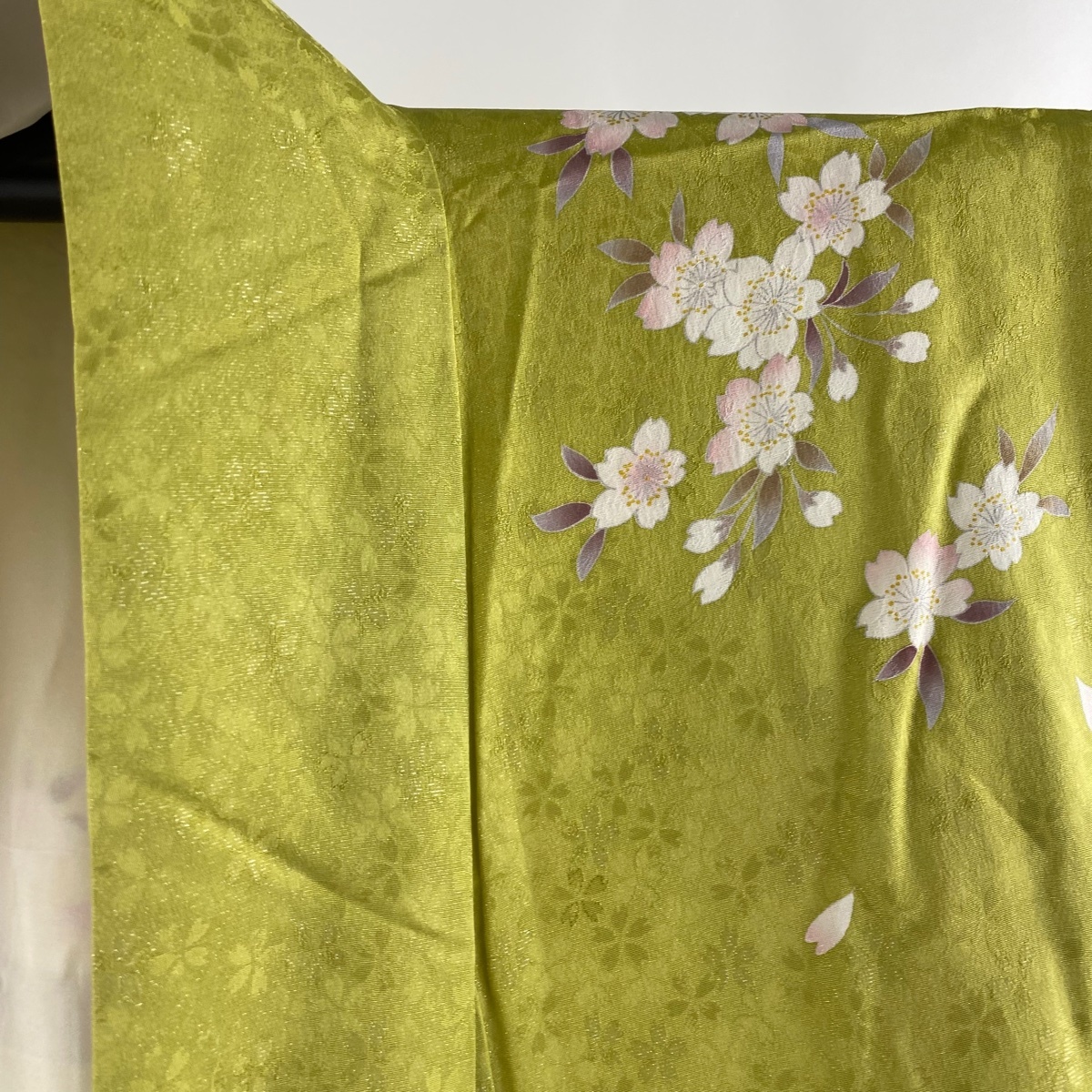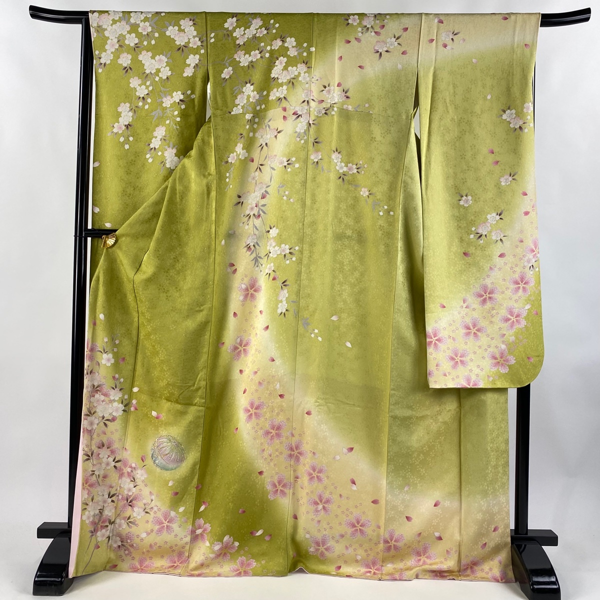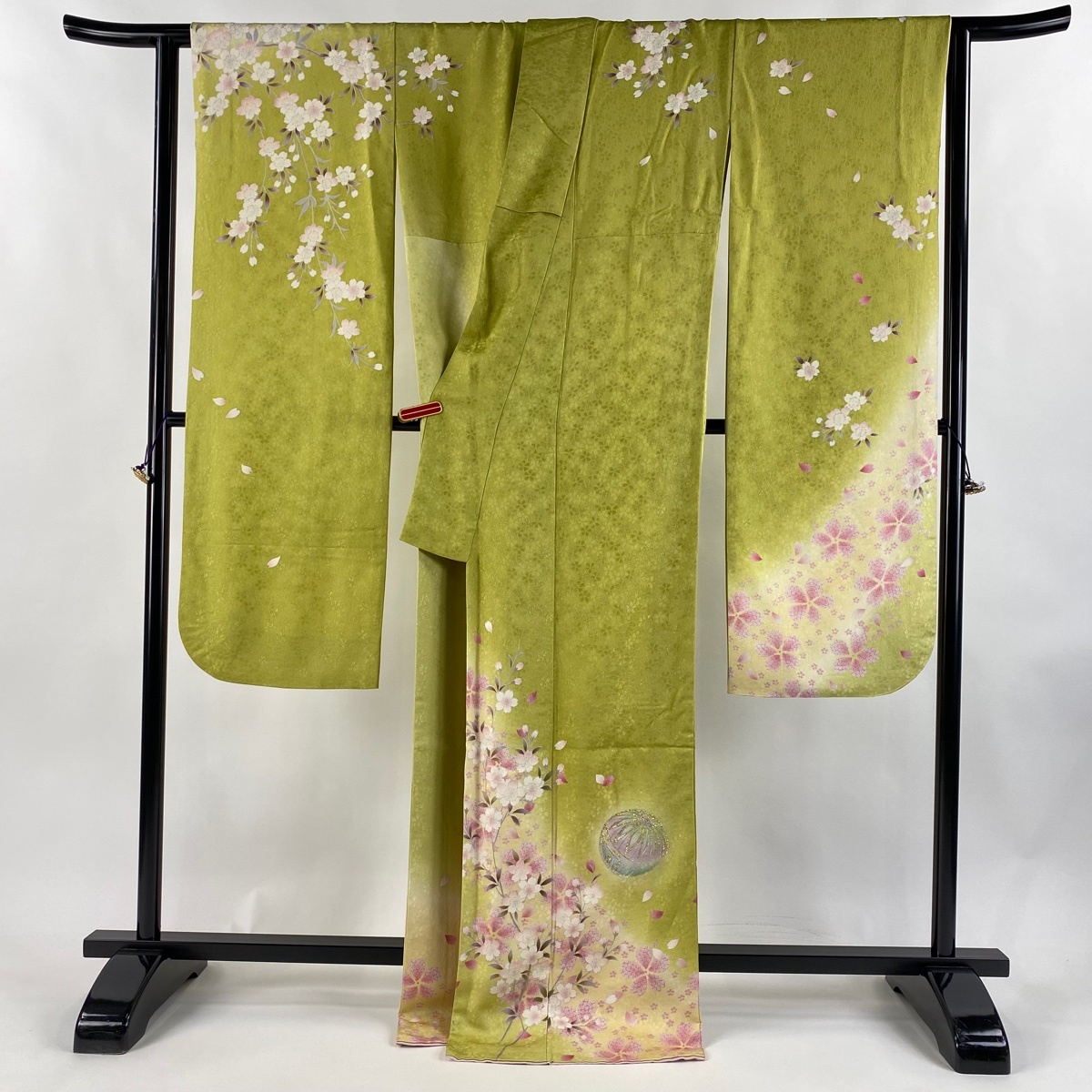 振袖 逸品 手鞠 桜 箔 銀通し 抹茶色 袷 身丈170.5 裄丈66 M 正絹 【中古】 |