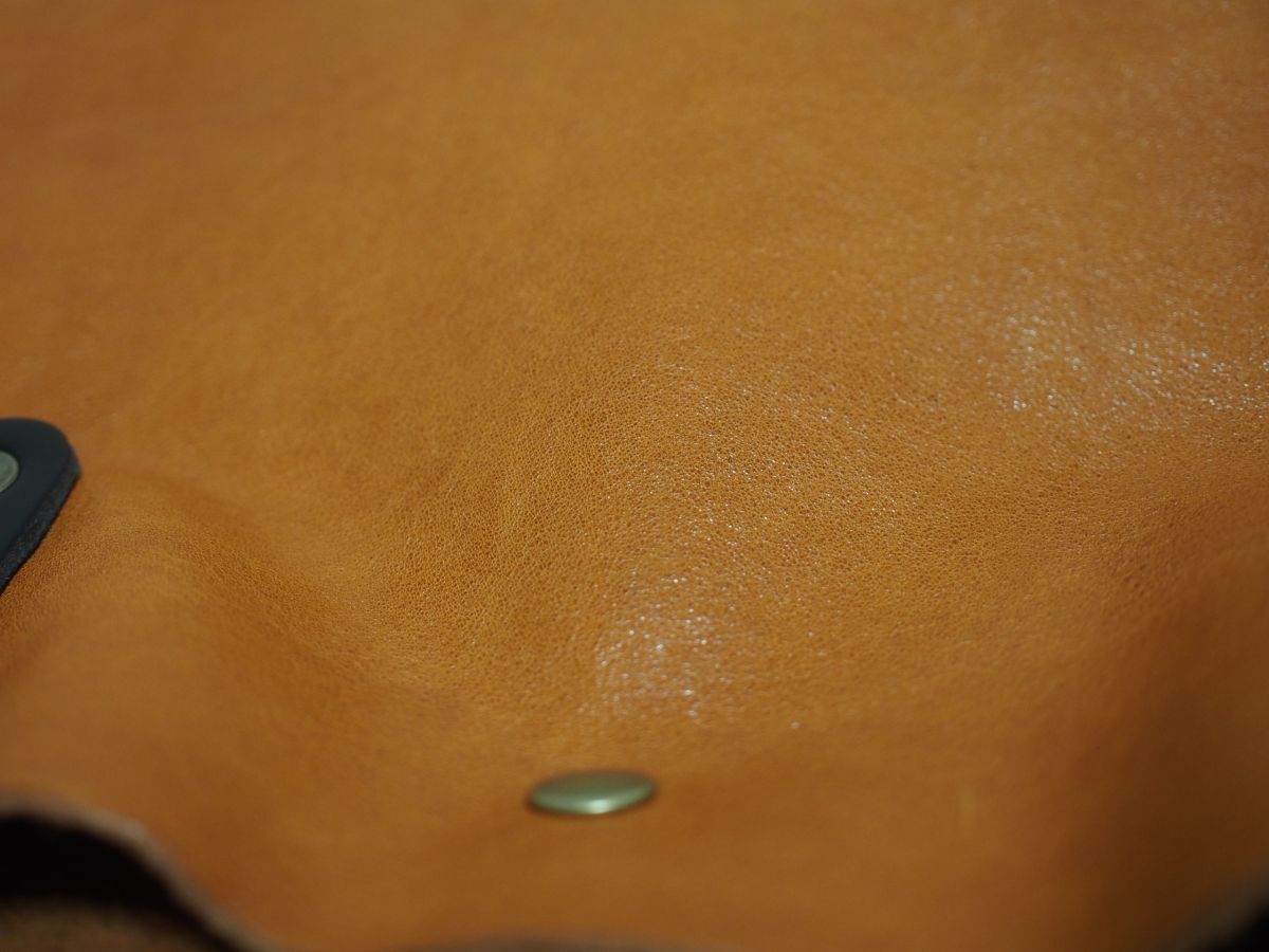 天然タンニン鞣しのプルアップレザーです。物理的な作業によってシワを強調させている特徴な革です。使い込んでいくうちにツヤ・味がでてきます。私たちが知っているかぎりこの革を使用しているところは、数少ないです。