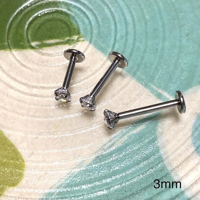 【1ペア】16G医療用ステンレスラブレットピアス ジルコニア3mm czボディピアス
