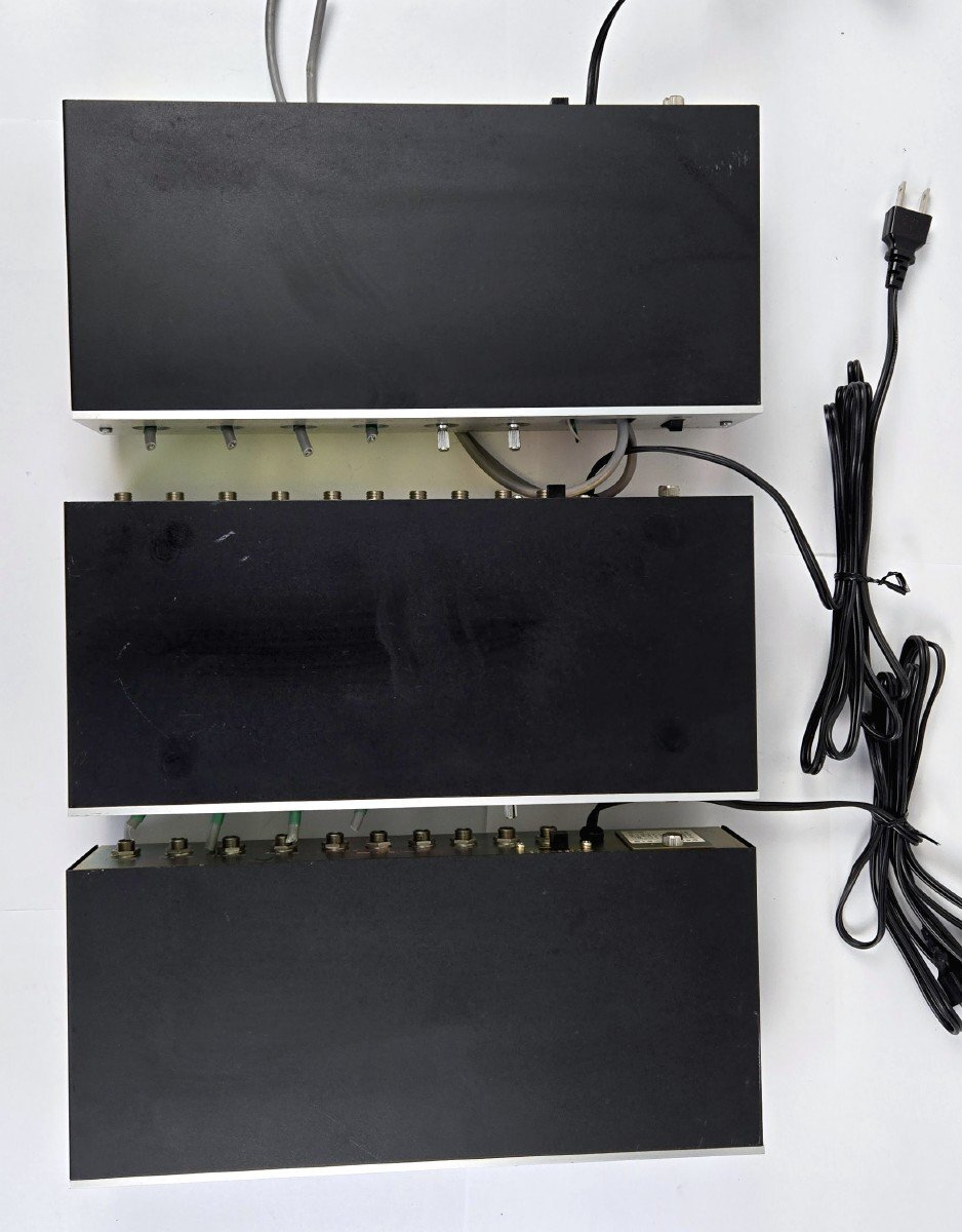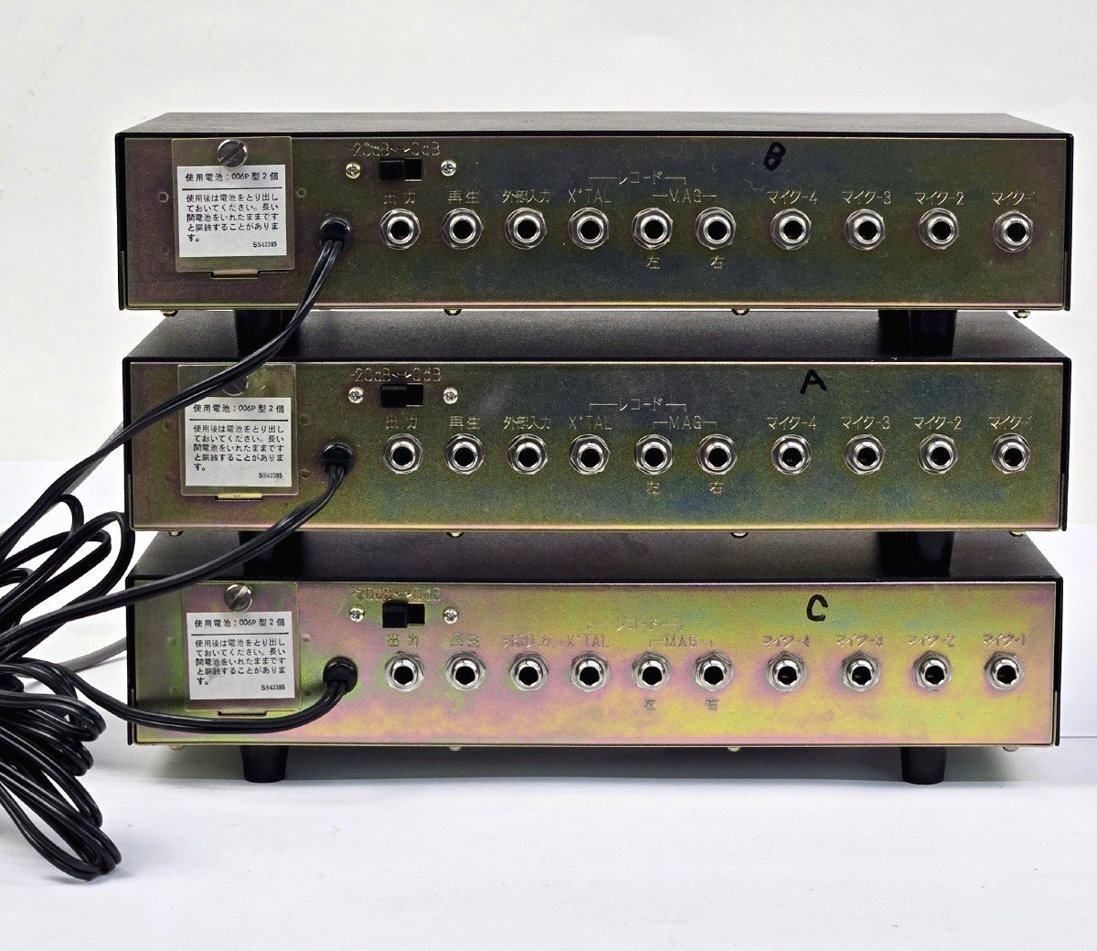 Victorのマイクミキサーが入荷致しました。 傷や汚れなど、中古の使用感が見られます。 ツマミや配線が途中で切断されており、詳細な動作確認ができないため、 ジャンク品としての出品となります。ご了承のうえ、ご入札ください。 メーターが付いている2点については、電源をONにすると 針が動くことを確認できました。 詳しい商品状態につきましては写真よりご確認ください。 【当アメNETでは】 出品する際の工具や業務用品、他の商品におきまして、清掃(吹き上げ)や動作確認をおこなっておりますが、 骨董・アンティークに関しては雰囲気を損なわないよう、最小限の清掃に留まらせて頂いております。 |