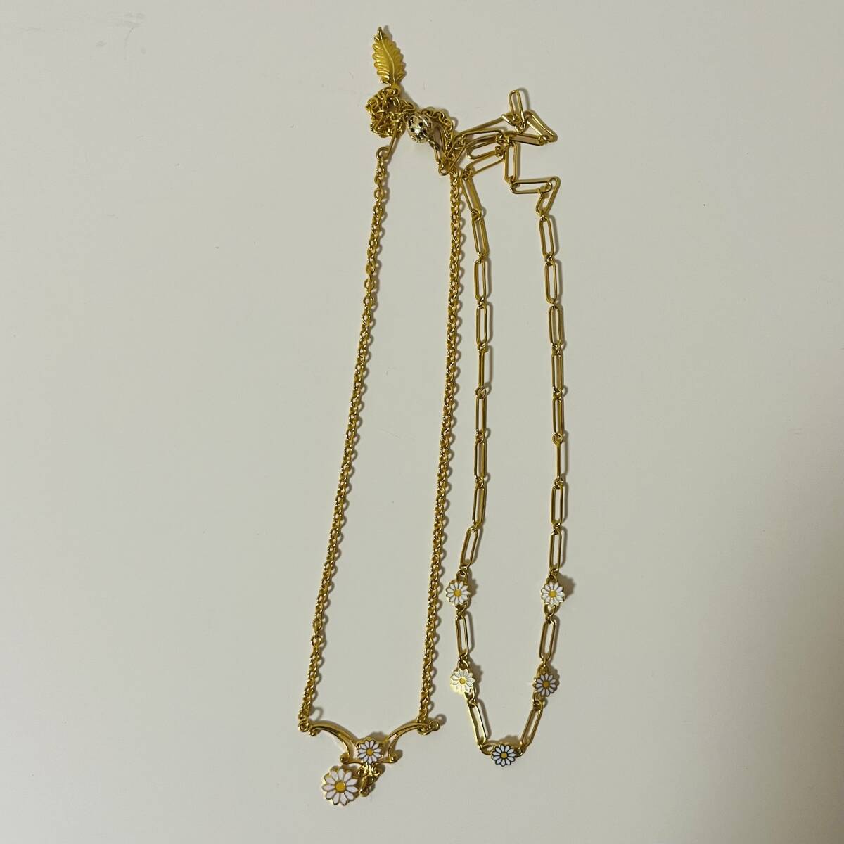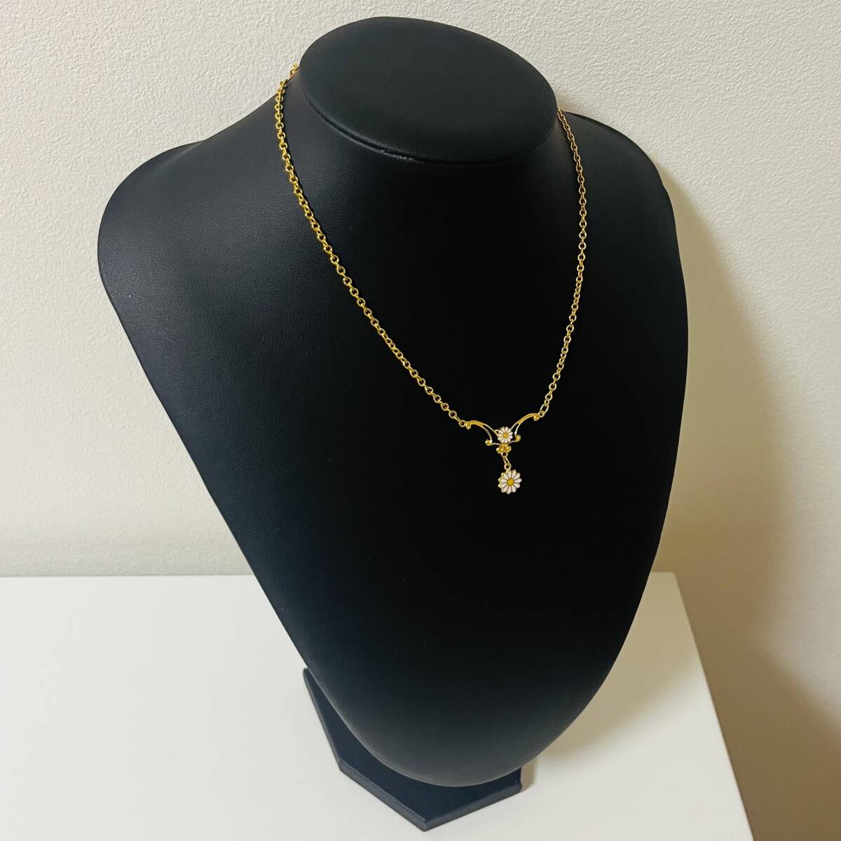 465 セット!ネックレス2本 アンティーク ビンテージ コスチュームアクセサリー 未使用保管品! ゴールドカラー 花 海外製