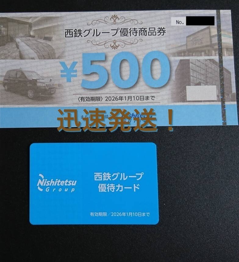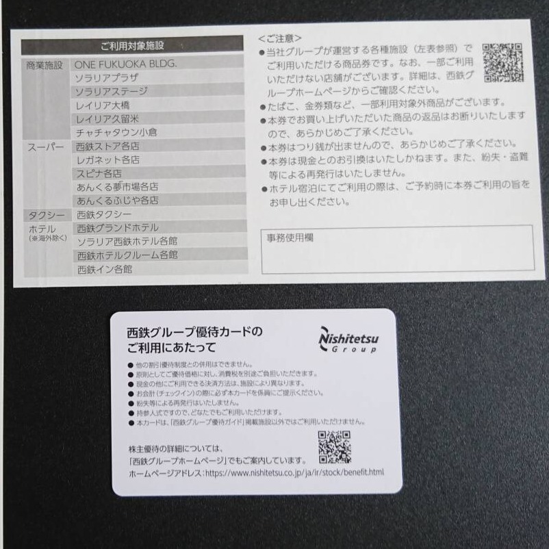 西鉄グループ優待商品券 500円×3枚=1500円(有効期限:2026年1月10日)西鉄グループ優待カード 3枚(有効期限:2026年1月10日)