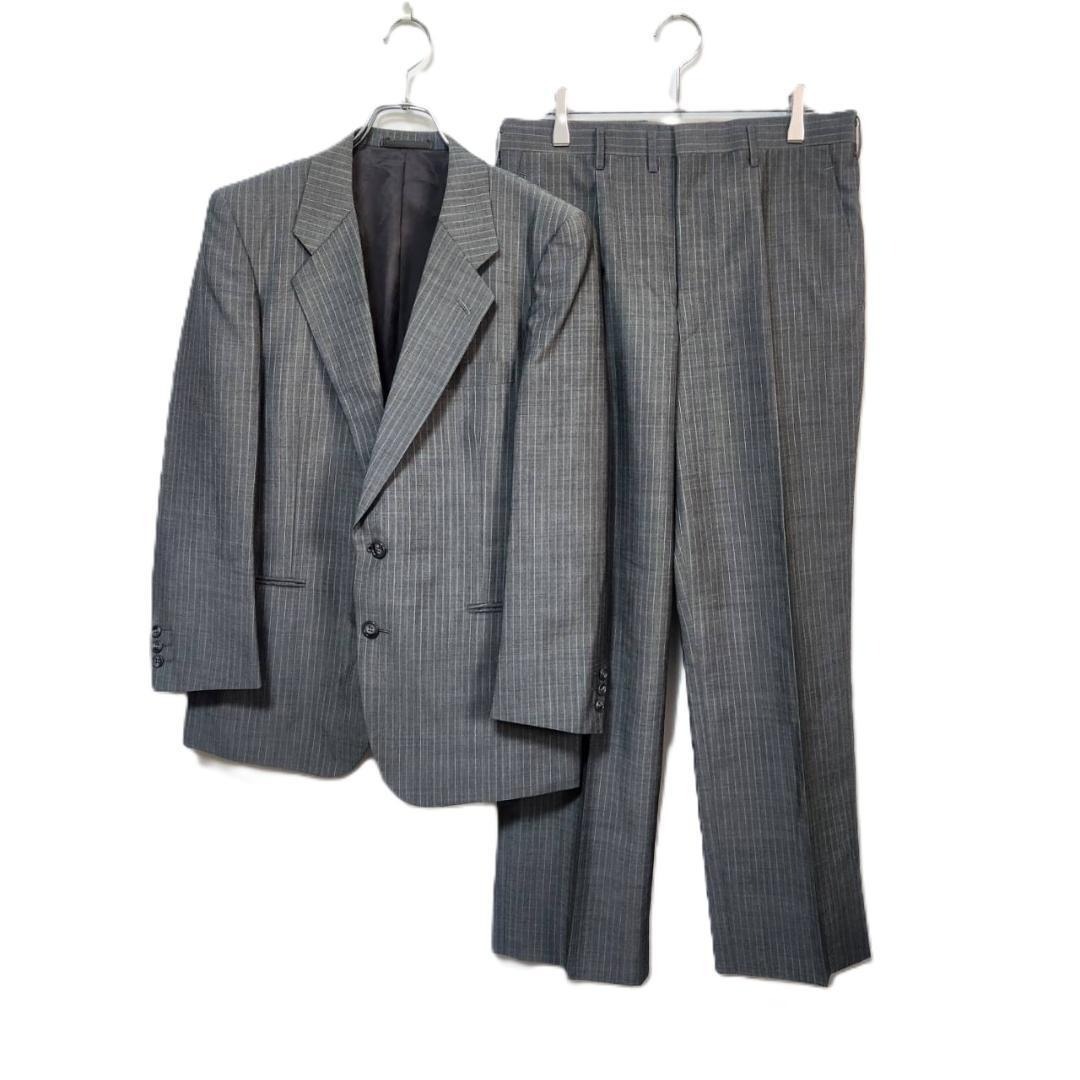 Winston ODAKYU(ウィンストン小田急)のスーツセットアップです。クラシックなグレーストライプ柄で、洗練された印象を与えてくれる一着。ジャケットとパンツ2本(替えパンツ付き)のセットになっており、着回し力も高いのが特徴です。ビジネスからフォーマルシーンまで幅広く対応できます。
