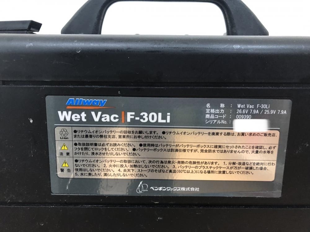 ペンギンワックス ■商品名 オールウェイコードレスウェットバキュームクリーナー ■型番 F-30Li Allway Wet Vac LV14 |