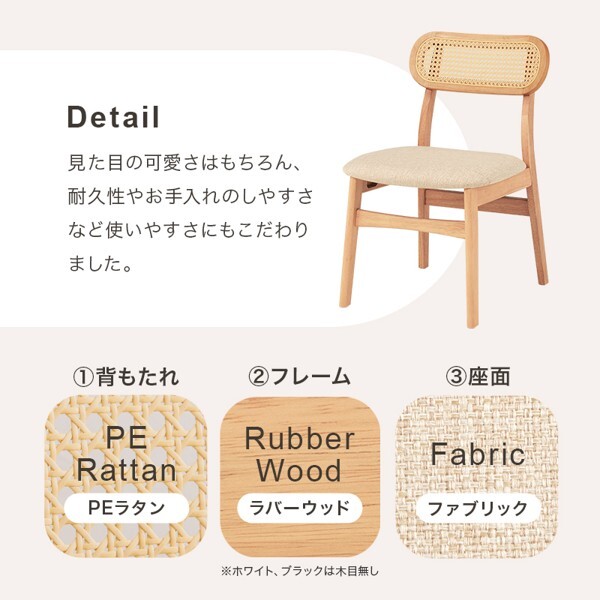 ※現在ご覧の商品ページはブラックのご購入ページとなります。 ヤフオクの仕様上単一ページに複数バリエーションを掲載することができませんので、他バリエーションが希望の場合は別ページでご購入お願い致します。 背もたれのラタン調かごめ編みが特徴的なかわいいデザイン。 使いやすさにもこだわったチェア2脚組です。 配達業者を指定いただくことはできません。 北海道/沖縄/離島のお届けに別途中継料金が発生します。 ※別途送料が発生する場合は後ほどご連絡させていただきます。 当店は正規店です。 タイミングによっては在庫切れの場合があります。