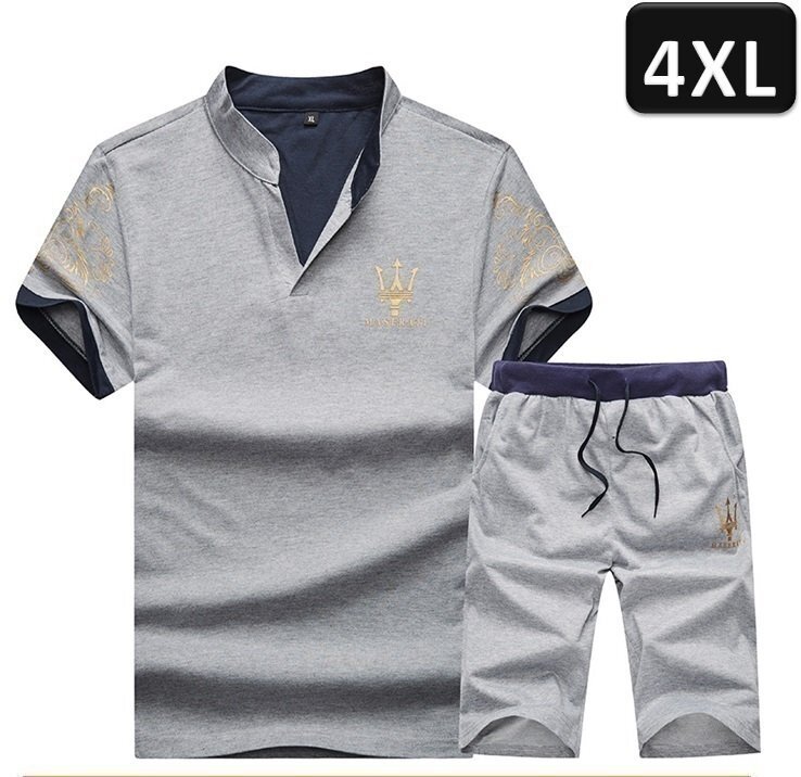 ☆大人気商品☆ジャージ 上下 セット 半袖 部屋着 ルームウェア スポーツウェア セットアップ グレー 4XLサイズ 【241】