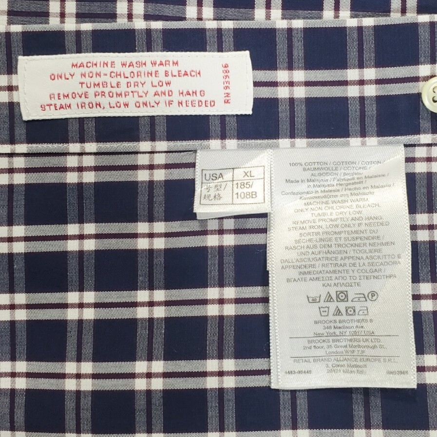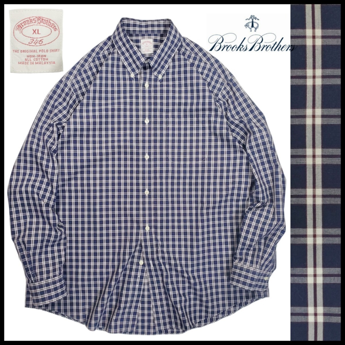 w331/古着 BROOKS BROTHERS 346 長袖シャツ XL ボタンダウンシャツ チェック柄 ブルックスブラザーズ 洗濯プレス済 ネコポス可