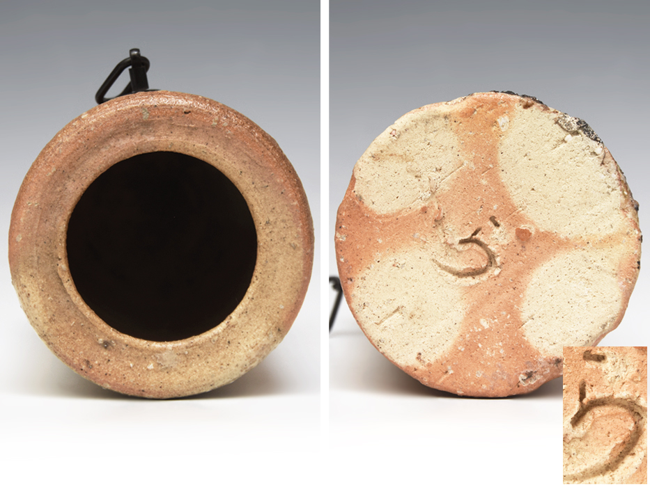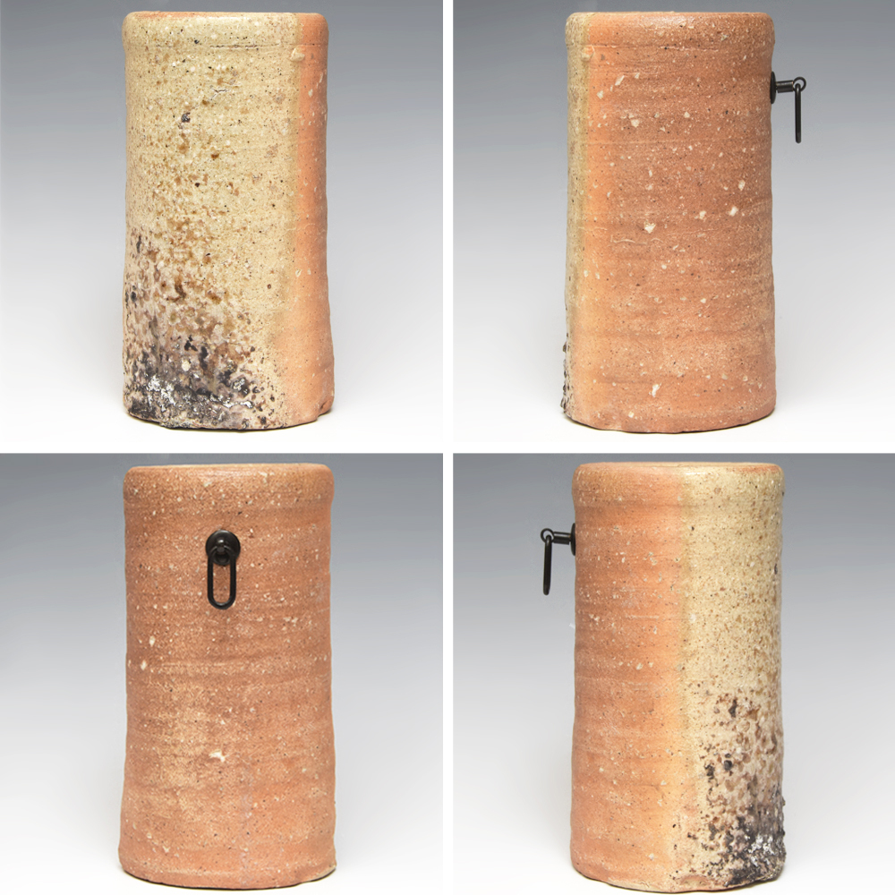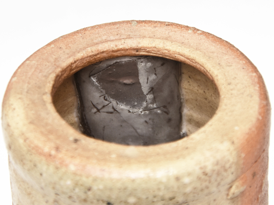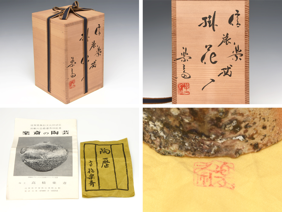 四代 高橋楽斎 (造) 信楽旅枕 掛花入 共箱 共布 しおり 茶道具 華道具 花生 |
