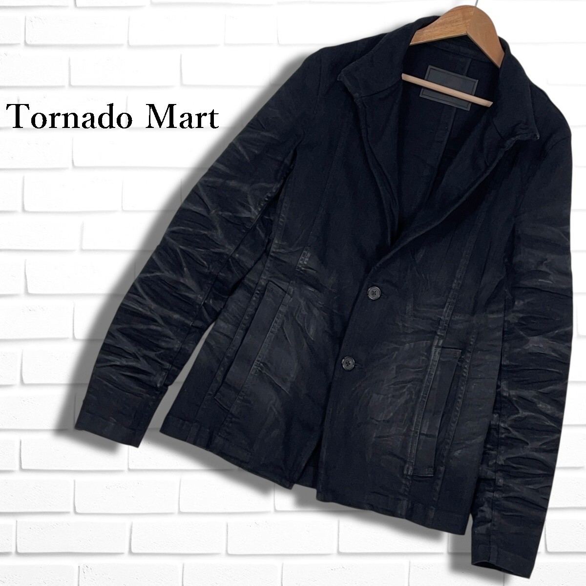 ◆良品◆ Tornado Mart トルネードマート Y2K 襟ワイヤー シェイプオフ コーティング ストレッチ ジャケット 黒 ブラック メンズ M 0285J□