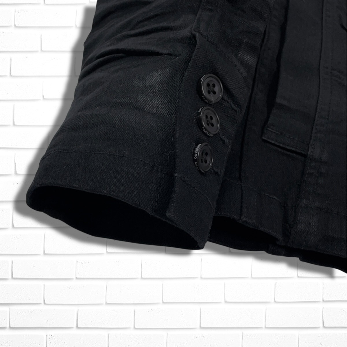 ◆良品◆ Tornado Mart トルネードマート Y2K 襟ワイヤー シェイプオフ コーティング ストレッチ ジャケット 黒 ブラック メンズ M ◆日本製 送料無料◆ 0285J□