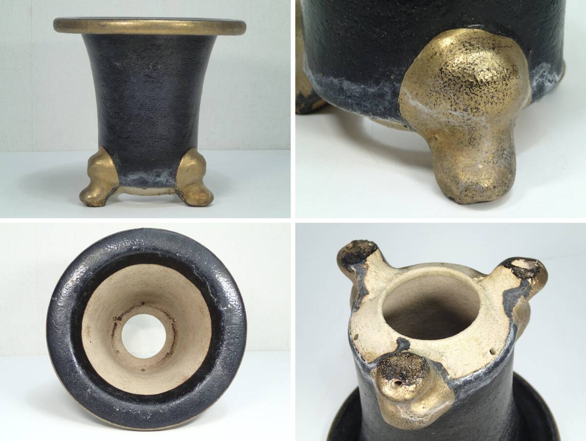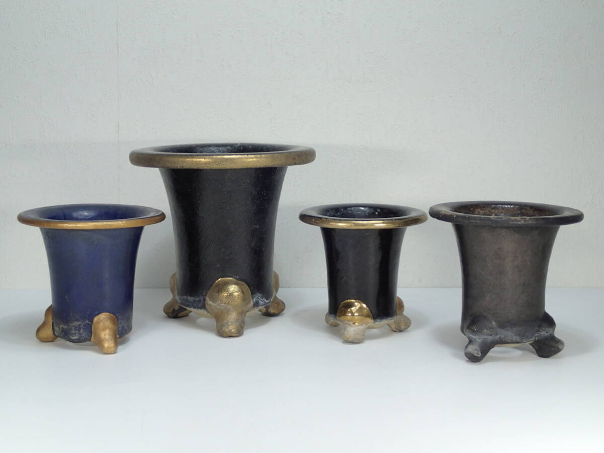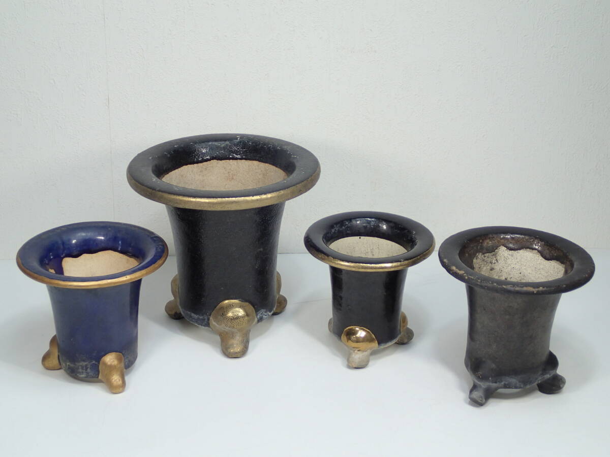 ⑭ 蘭鉢 万年青鉢 おもと鉢 縁足金 黒塗 4個セット /植木鉢 富貴蘭 万年青 盆栽鉢