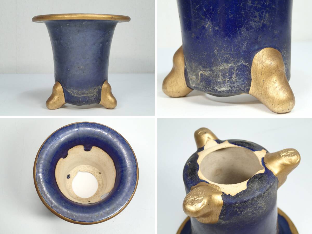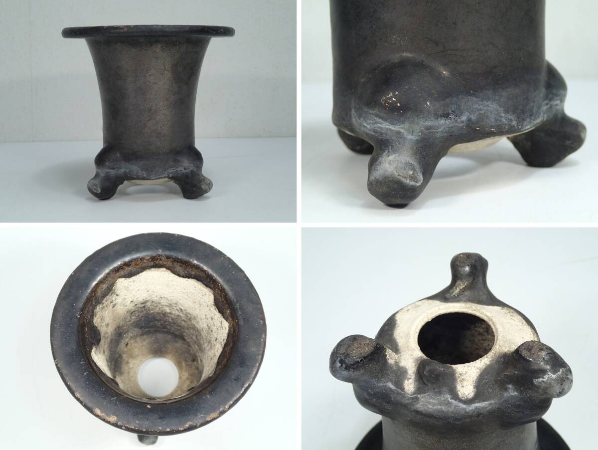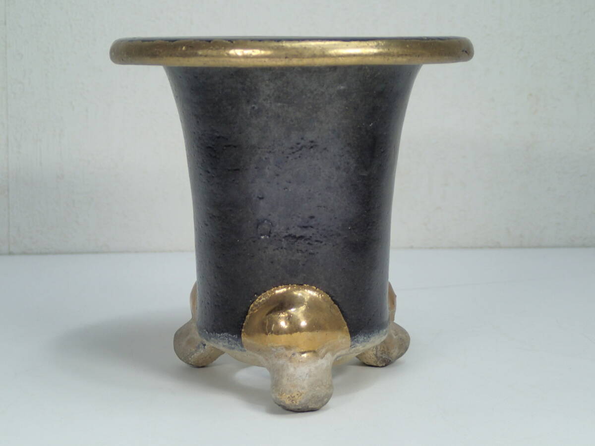 ⑭ 蘭鉢 万年青鉢 おもと鉢 縁足金 黒塗 4個セット /植木鉢 富貴蘭 万年青 盆栽鉢