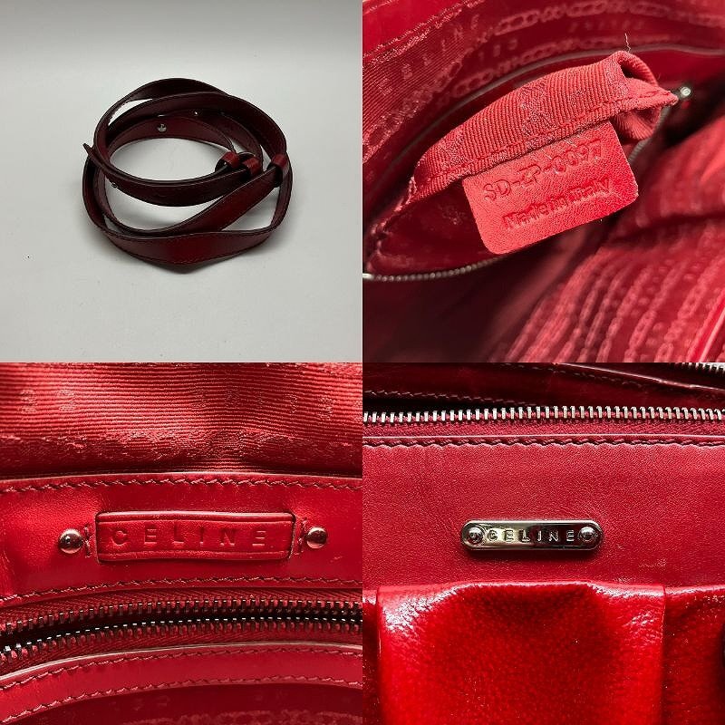 π【 CELINE セリーヌ Lirine リリーヌ ラージ 2way レッド パテント トートバッグ 斜め掛け レディース エナメル ショルダー 】KH11168
