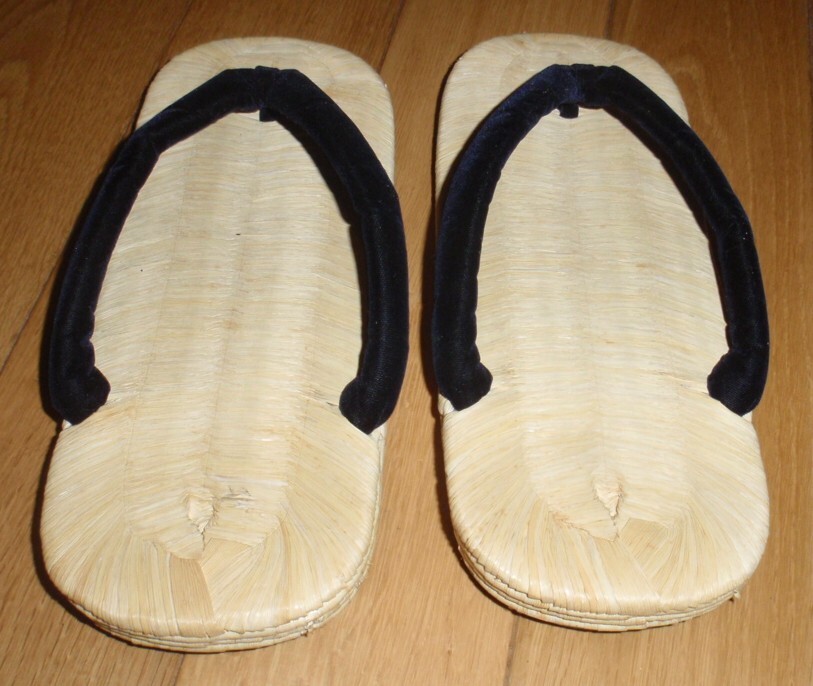 細かな編みの畳表雪駄/南部表/野崎表/棕櫚表/本店ビロード鼻緒/前2枚、踵4枚重/牛皮底/24.3㎝