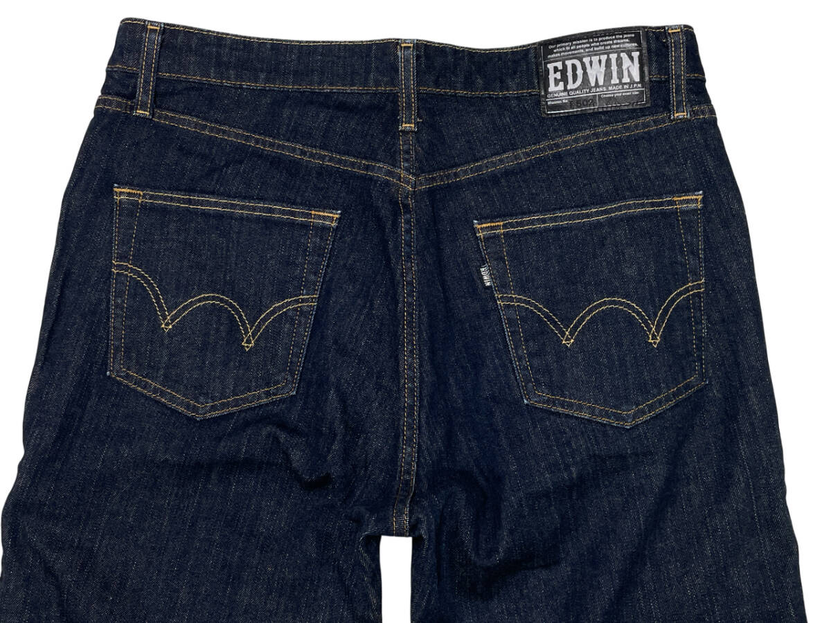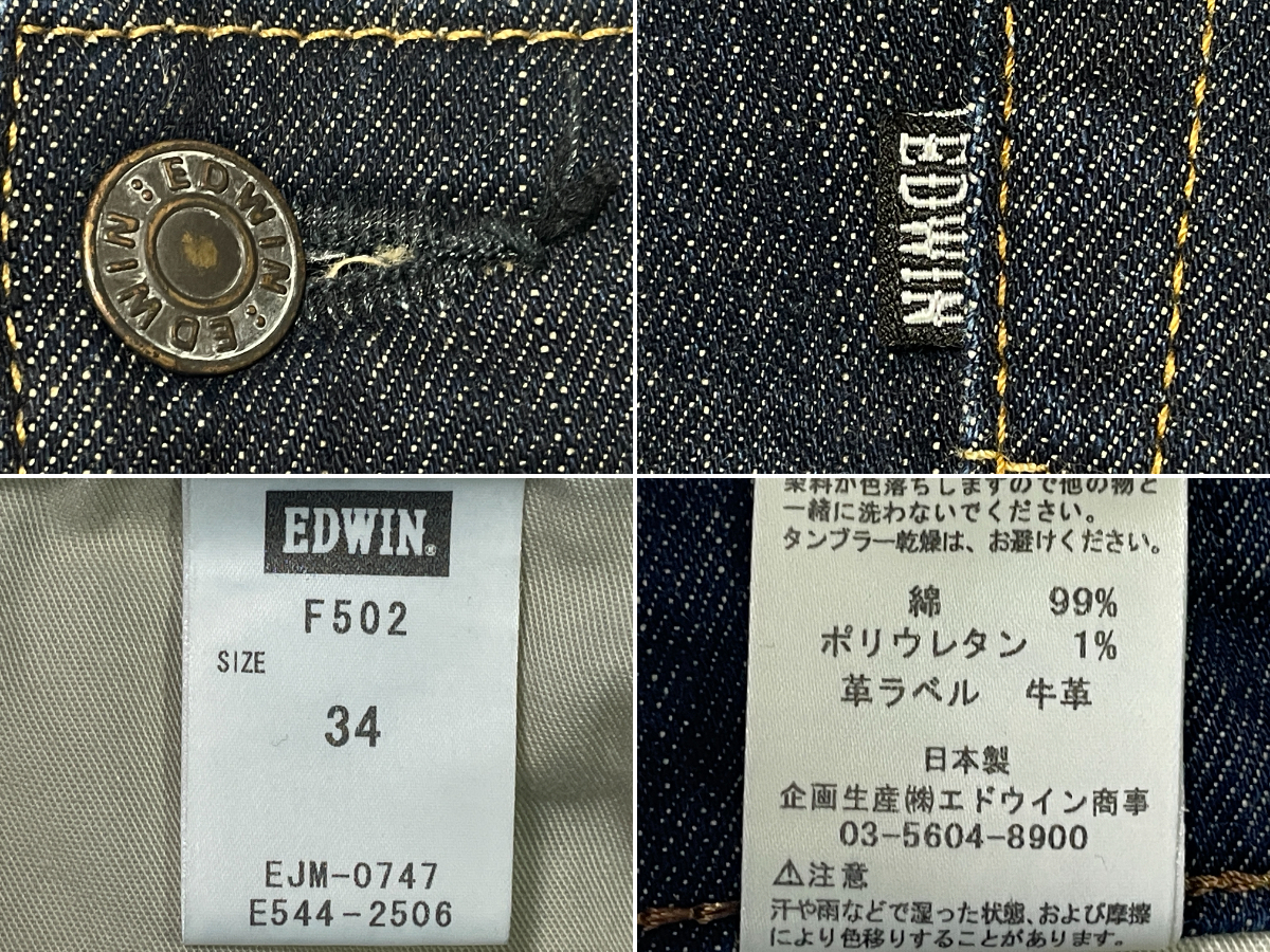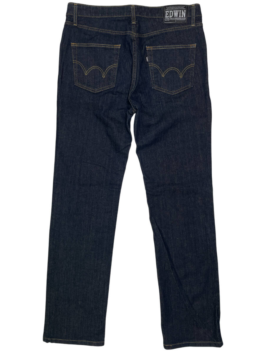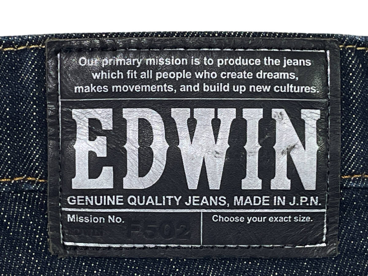 ブランド:EDWIN 型 番 :F502 カラー :インディゴ 状 態 :USED エドウィン F502 テーパード デニムパンツ です。 ゆったりとした腰回りに、太ももから足首へ軽いテーパードが掛かったキレイなシルエットのパンツです。 ストレッチが効いて履きやすいデニムです。 状態が良く色残りも良い、これから長く付き合える品です。お探しの方お勧めの1本です。 ■サイズ:製品表記 W34 ■サイズ:実寸(平置き) ウエスト 44.0cm (×2=約88cm) 股下 81.5cm 股上 29.0cm ワタリ 29.5cm すそ幅 21.0cm | ||