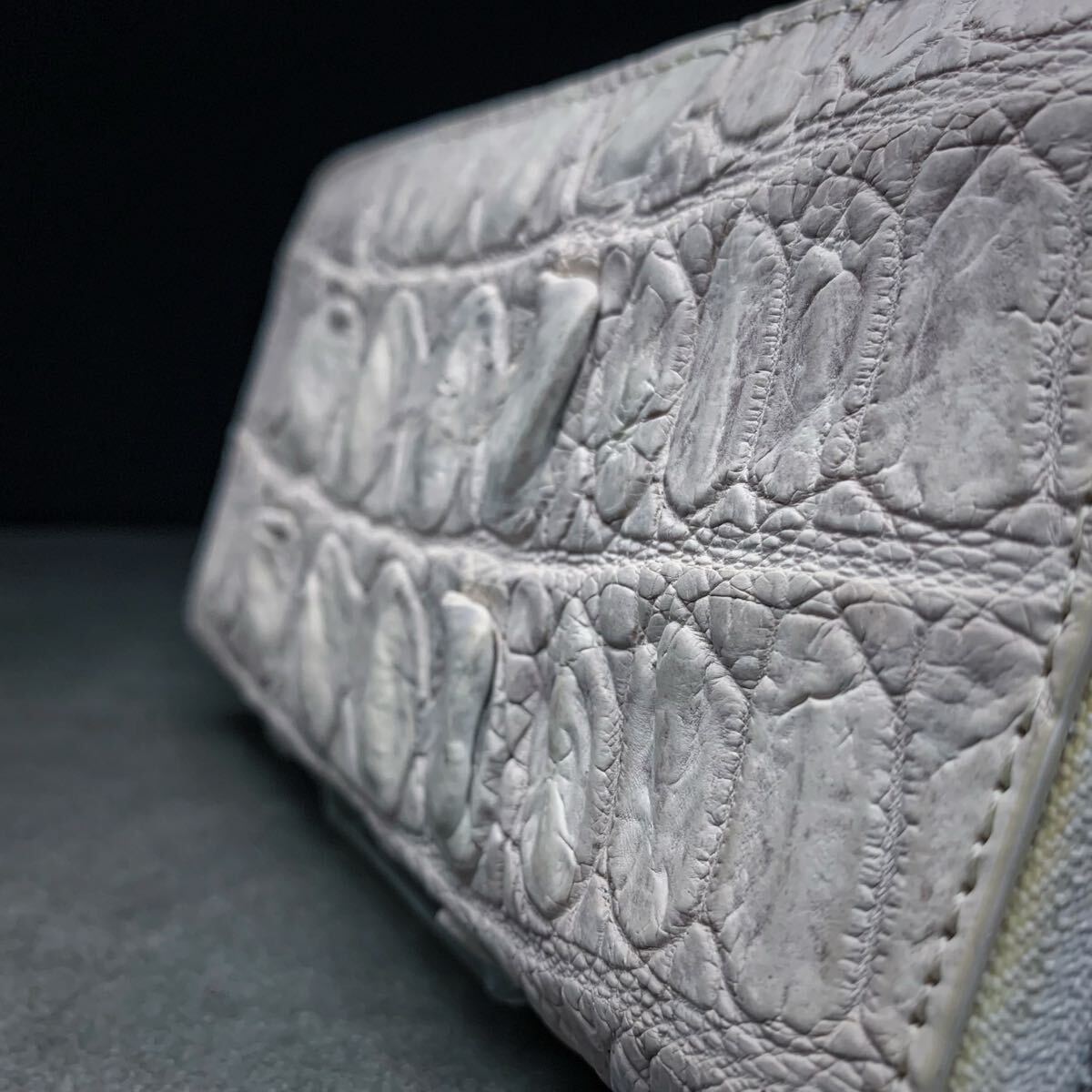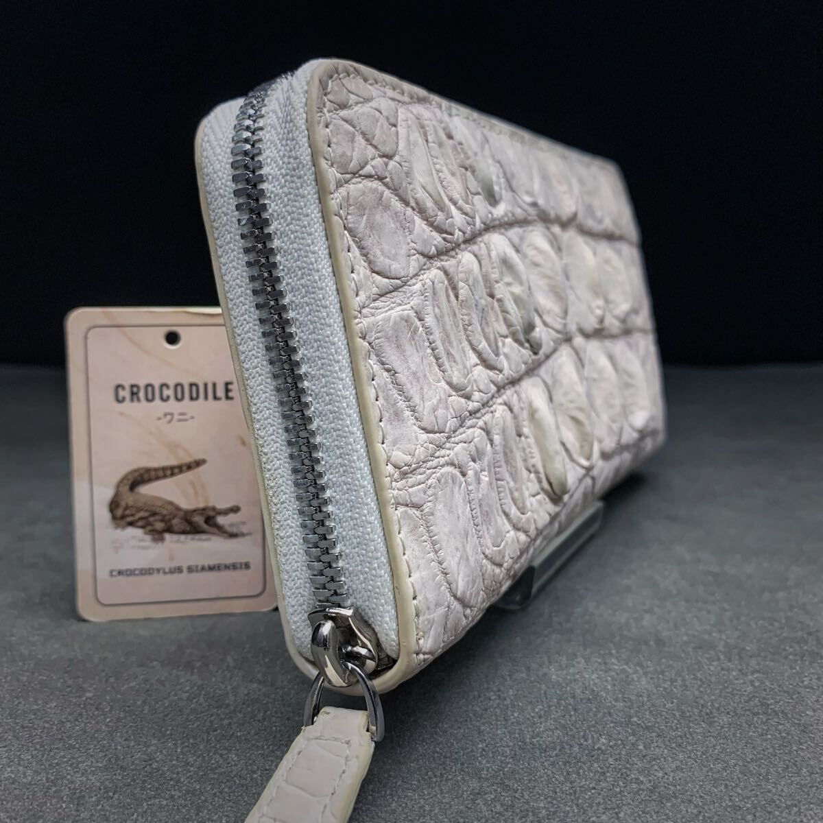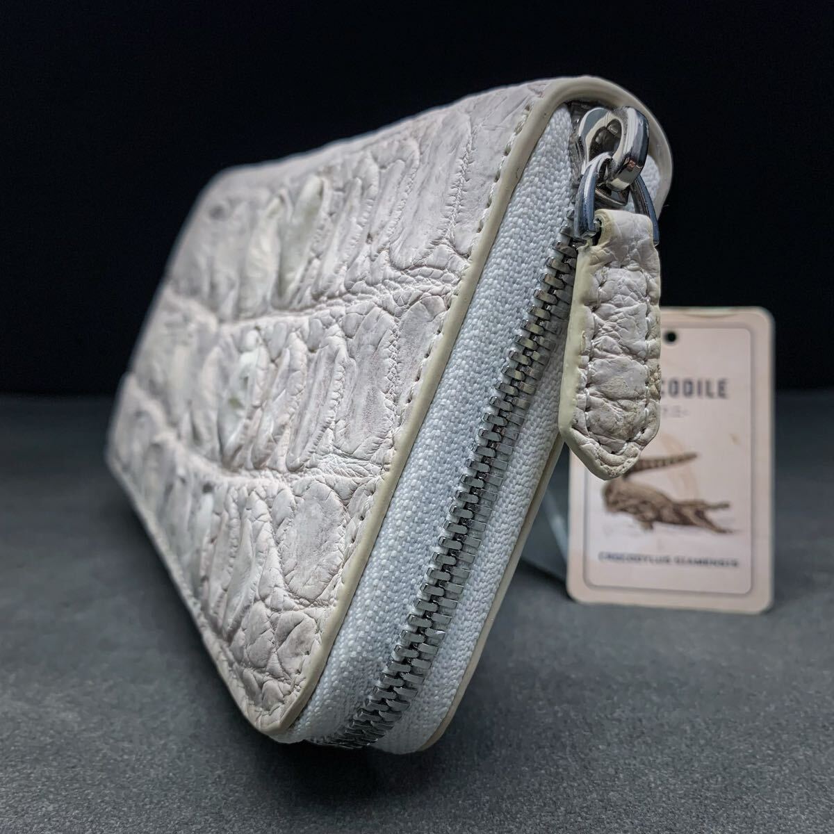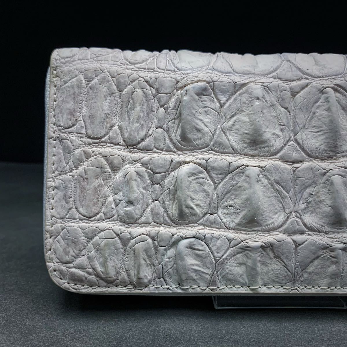 クロコダイルと呼ばれている品種のワニ革は人気が高く、独特の模様と凹凸が魅力で、高級ブランド品を中心にクロコダイルが多く使われています。今回はワニ革の代表格である<シャムクロコダイル>の背革部のラウンドファスナー財布を出品します。